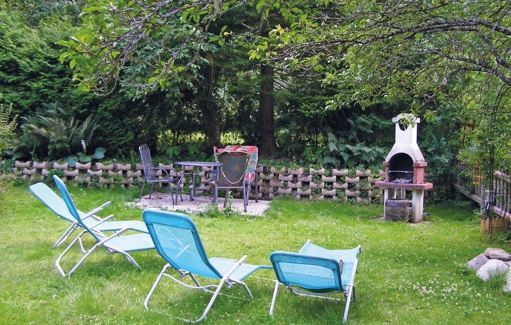Lejligheden med en have og liggestole og en muret grill bag huset har en idyllisk beliggenhed i en skov. Glæd jer til at nyde morgenkaffen på altanen mens I planlægger dagens aktiviteter og lader jer fortrylle af det smukke landskab.