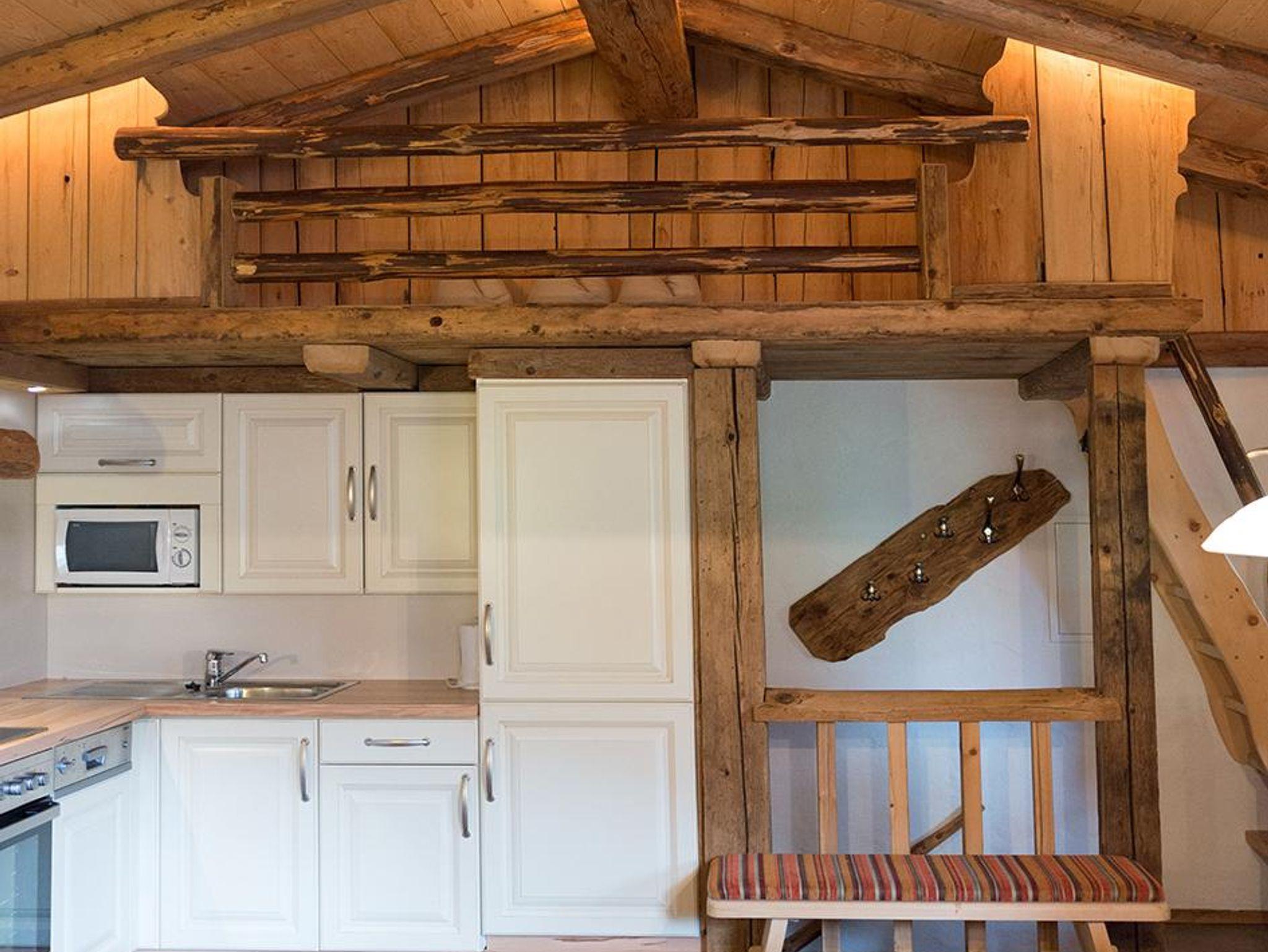 Das Holz von einer ca. 300 Jahr alten Hütte wurde zu einer gemütlichen Almwohnung umgewandelt.