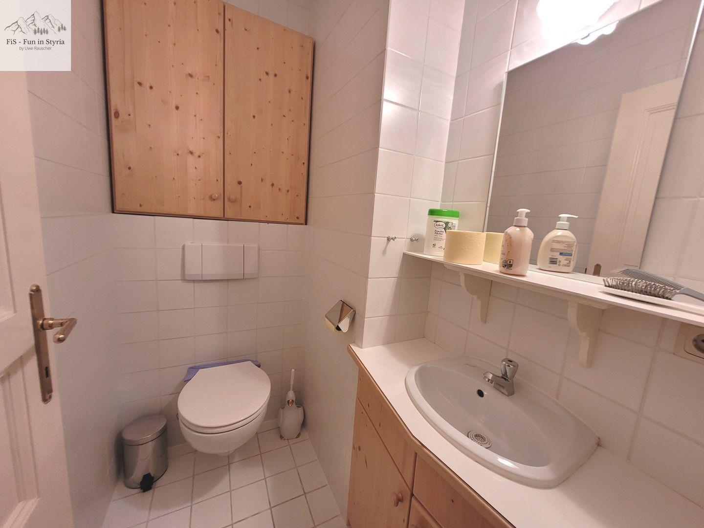 Das Badezimmer umfasst eine Dusche, Waschbecken, Spiegel, Haartrockner und wird durch ein separates Gäste-WC ergänzt. Handtücher, Bettwäsche und Seife sind in der Erstausstattung enthalten. Überall im Apartment sorgt eine Zentralheizung für angenehme Temperaturen, Sichtschutz an allen Fenstern bietet Privatsphäre, zudem ist das Apartment als Nichtraucherunterkunft ausgewiesen.