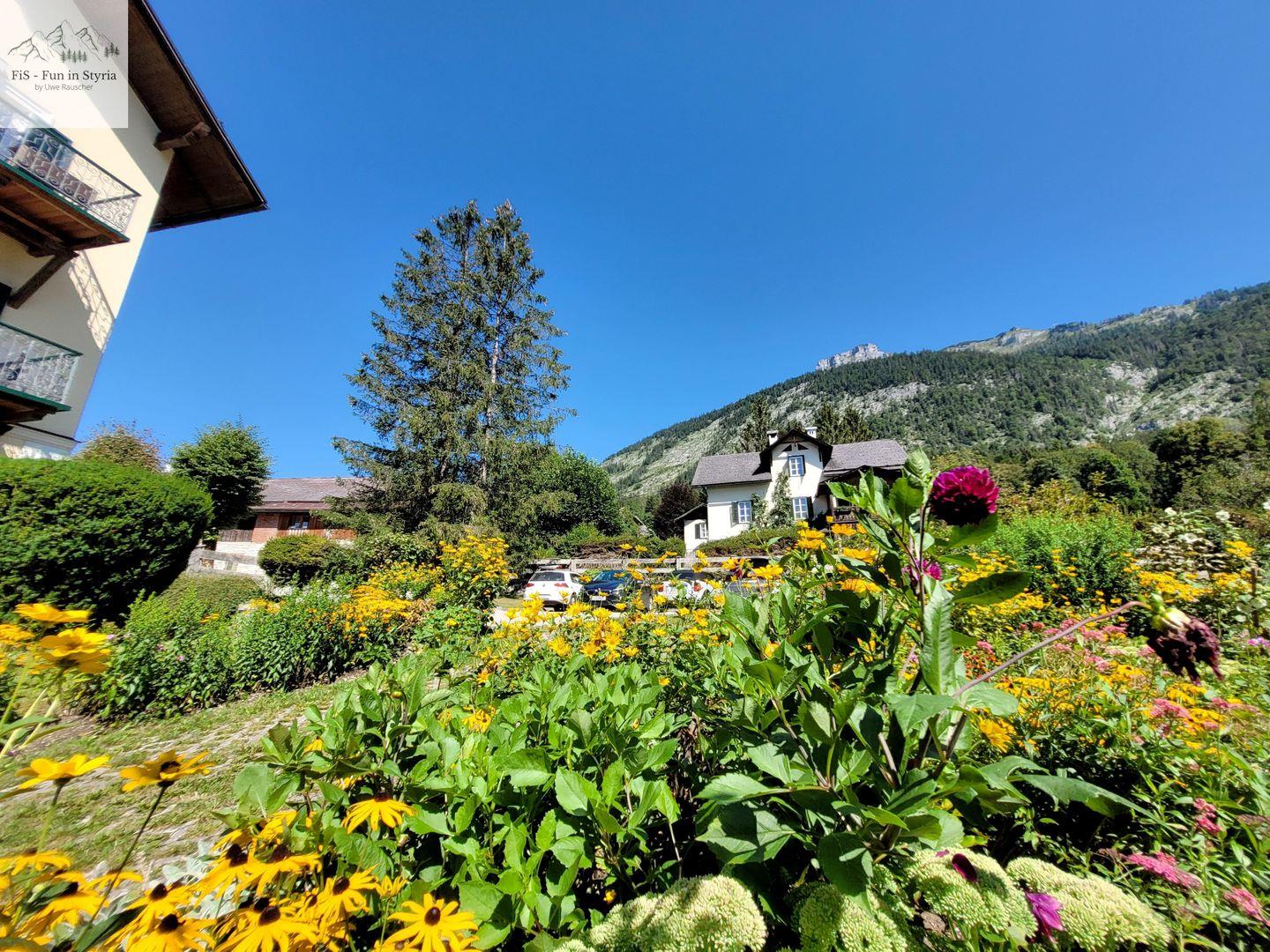 Ein besonderes Highlight ist der geschlossene, überdachte Balkon, von dem Sie einen außergewöhnlich guten Ausblick auf den See, die Berge, das Tal und die umliegende Landschaft genießen. Der gepflegte Garten mit Liegewiese und Sonnenliegen lädt zum Verweilen ein. Hier können Sie entspannen, während Sie den Blick aufs Wasser oder die Alpenkulisse schweifen lassen. Der Zugang zum Steg und die Lage in erster Reihe zum steinigen Strand sorgen für unmittelbares Badevergnügen am Altausseer See – nur etwa zehn Meter entfernt. Auch Aktivitäten wie Angeln, Bootsmiete oder Kanufahren sind in unmittelbarer Nähe möglich.