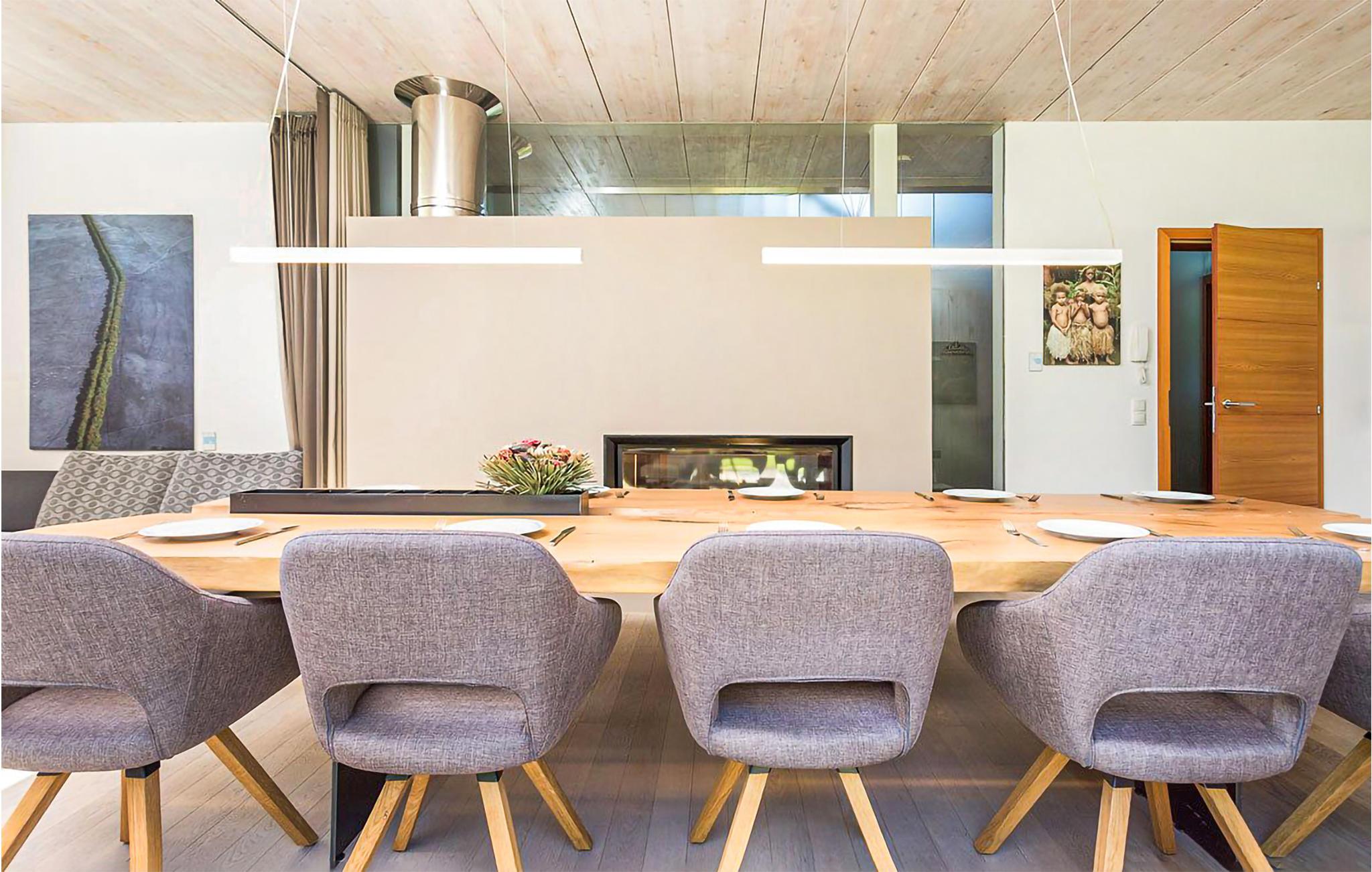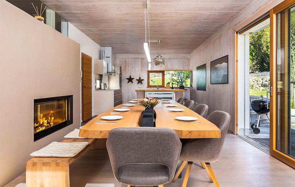 Det komfortable hus har en ideel beliggenhed, hvis I vil nyde naturen fuldt ud på ethvert tidspunkt af året. Fornøjelse, rekreation og afslapning er i højsædet her. Oven på en dag fyldt med oplevelser kan I slappe af i de velindrettede lokaler. Få varmen i saunaen eller dæk op på spisebordet til fællesspisning, mens pejsen skaber en hyggelig atmosfære og gulv til loft-vinduerne sørger for, at I kan nyde den flotte udsigt fuldt ud. Slap af i den elegante atmosfære i det komfortable siddeområde eller på den komfortable sofa og begynd at lægge planer for de næste par dage.