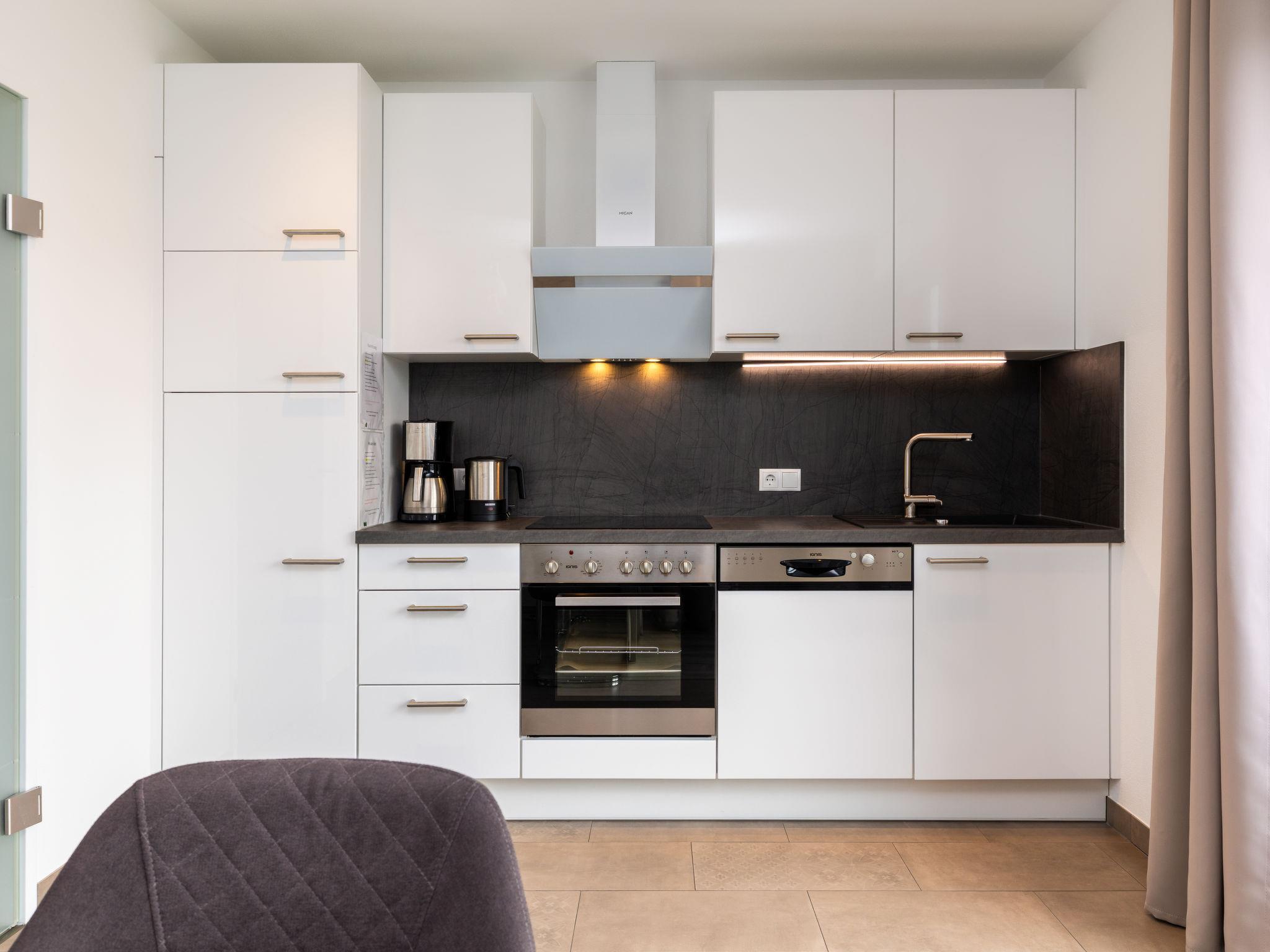 "Bergblick", 3-room apartment 58 m2 on 1st floor. Comfortable and tasteful furnishings: entrance hall. Luggage room. 2 double bedrooms, each room with TV (flat screen). Open kitchen (oven, dishwasher, 4 ceramic glass hob hotplates, toaster, kettle, electric coffee machine) with dining table. Shower, sep. WC. Underfloor heating. Very beautiful view of the mountains. Facilities: hair dryer. Internet (WiFi, free). Please note: non-smokers only. Smoke alarm. The luggage room is heated and can be used as a drying room for clothes. 50401-000137-2020