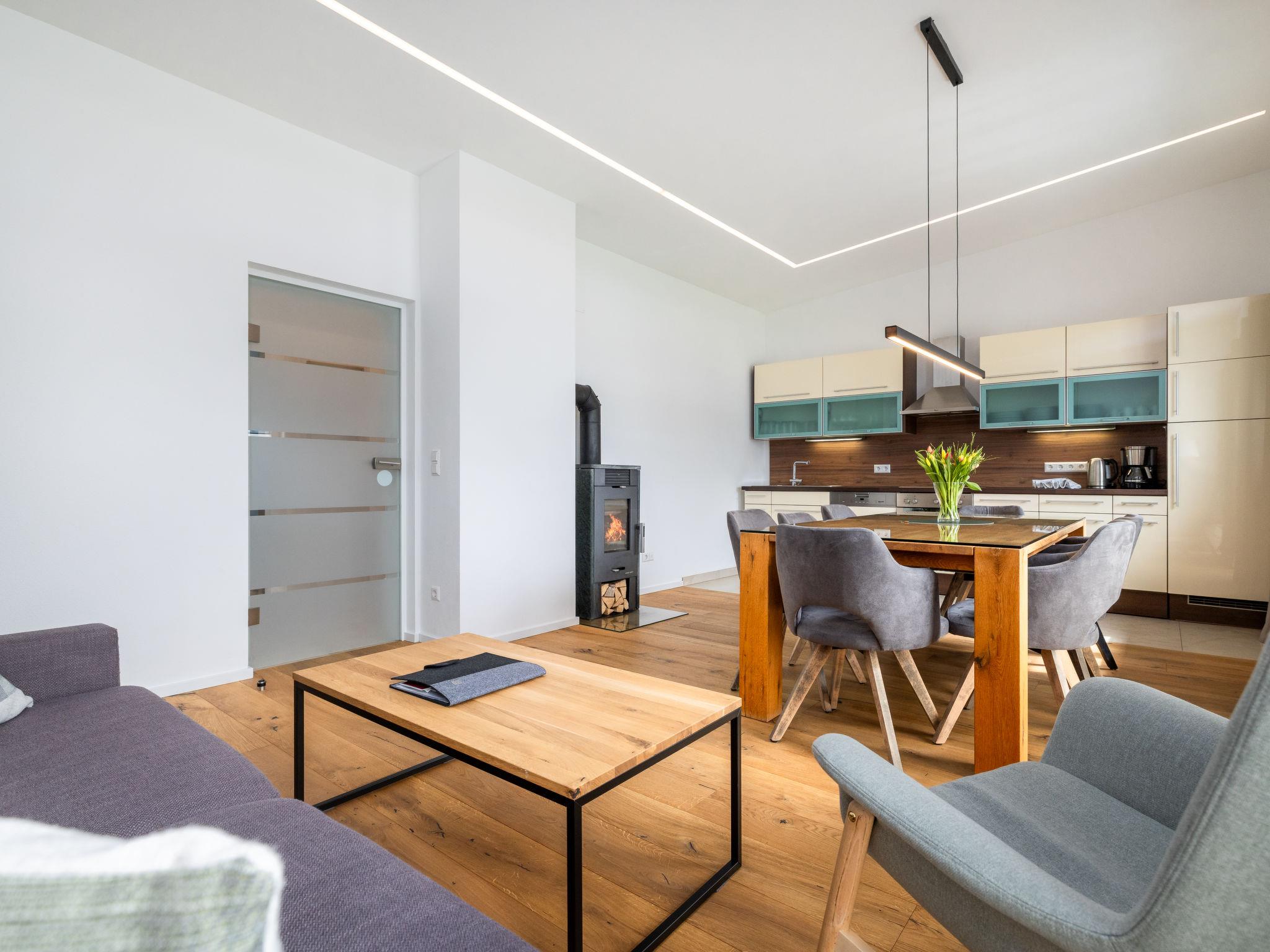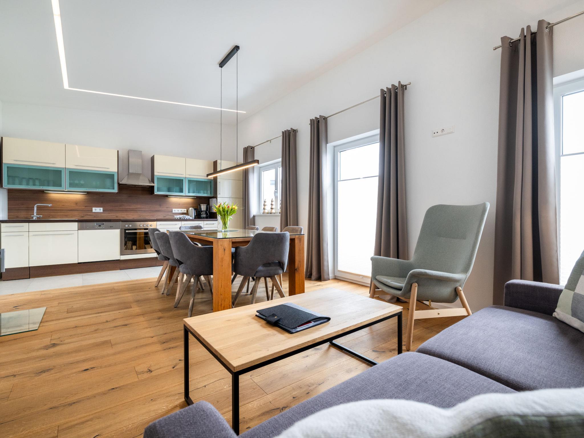 "Bergblick Deluxe", 4-room apartment 100 m2 on 2nd floor. Comfortable and tasteful furnishings: entrance hall. Large living/dining room with 1 double sofabed and Scandinavian wood stove (only for decoration). 3 double bedrooms, each room with TV (flat screen). Large, open kitchen (oven, dishwasher, 4 ceramic glass hob hotplates, toaster, kettle, electric coffee machine) with dining table. Shower, shower/WC, sep. WC. Underfloor heating. Large terrace 85 m2. Terrace furniture. Very beautiful view of the mountains. Facilities: hair dryer. Internet (WiFi, free). Please note: non-smokers only. Smoke alarm. 50401-000137-2020