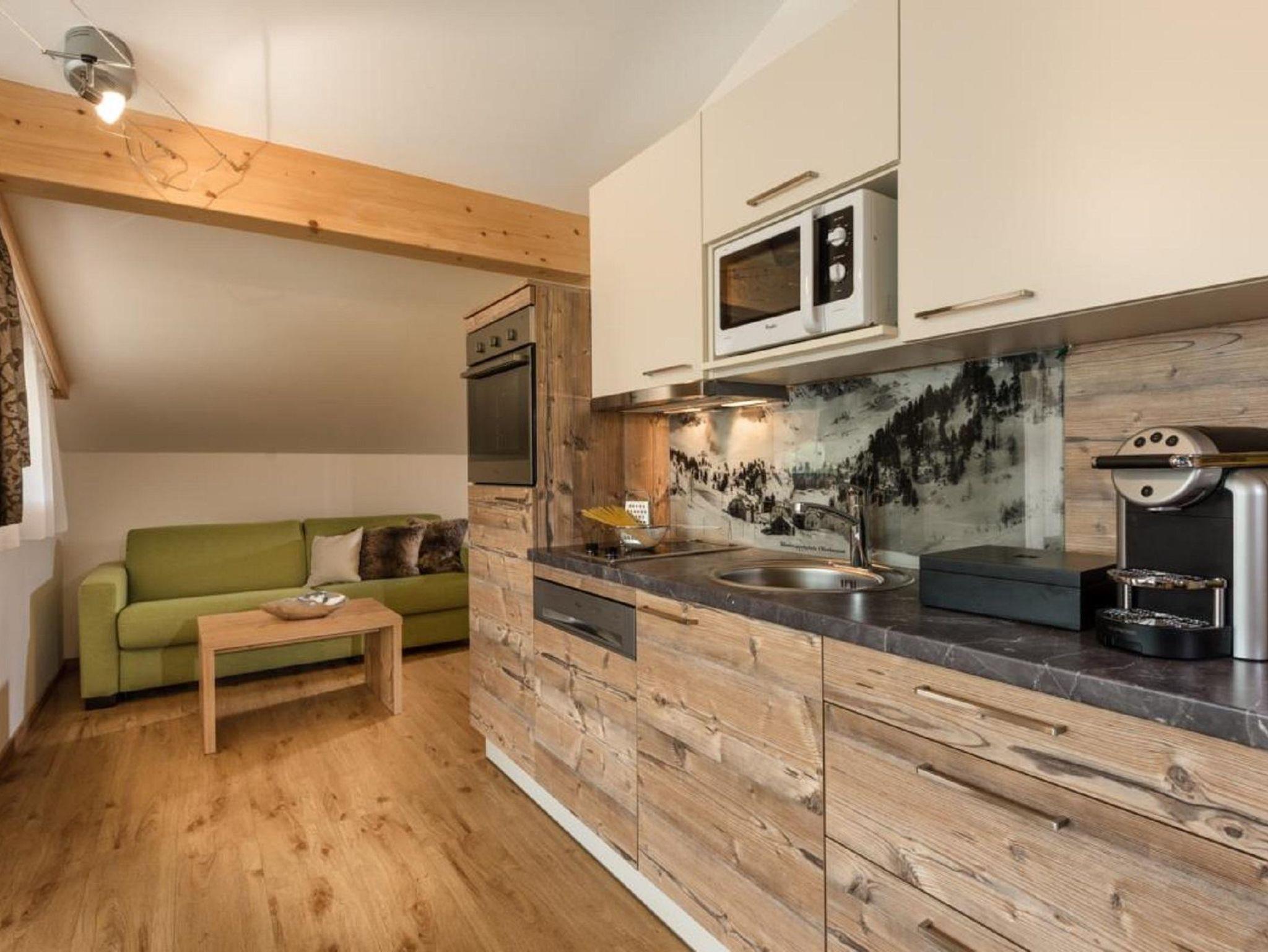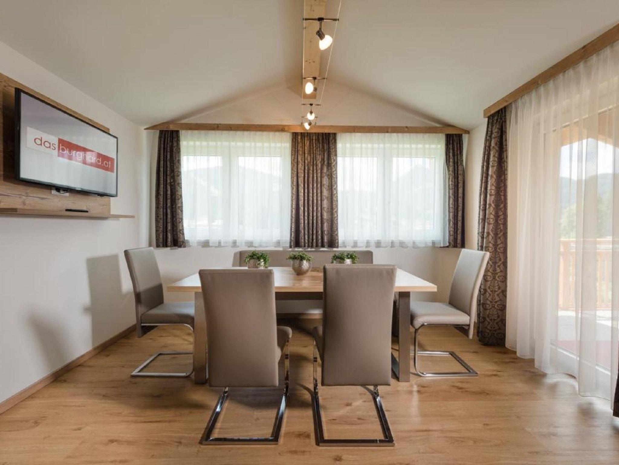 Im Dachgeschoss befindet sich die größte Ferienwohnung Obertauern mit 84,44 m². Somit ist genügend Platz für Sie, Ihre Freunde oder Ihre Familie. Das Appartement ist mit zwei großen Schlafzimmern ausgestattet. Es befinden sich zwei große Badezimmer mit Dusche WC und Haarfön sowie einem hellen, freundlichem Wohnraum mit Balkon in der Ferienwohnung Obertauern. Die Küche im lichtdurchfluteten Wohnraum ist voll ausgestattet. Weiters befindet sich ein ausziehbares Schlafsofa im Wohnraum. Der moderne Essbereich lädt zum gemeinsamen Dinieren ein. Entspannen sie sich in der Infrarotkabine.