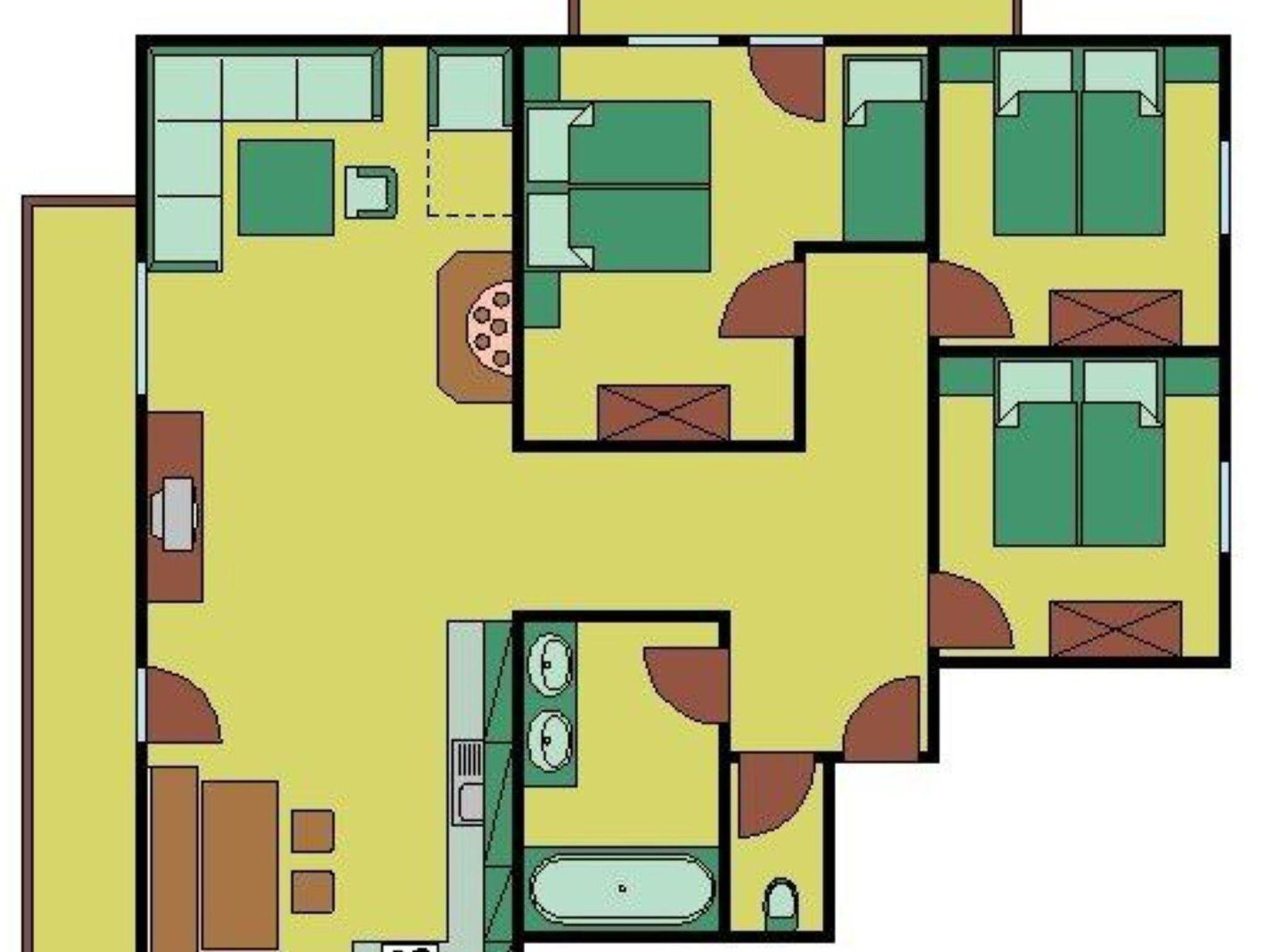 4-Raum-APP: Appartement für max 8 Personen(96qm), 2 Schlafräume für je 2 Personen, 1 Schlafraum für 3 Personen, Bad/WC, großer Wohnraum mit Kachelofen (ev.1 Zustellbett), gemütliche Couch, Küchenzeile, Esstisch, Balkon. Inklusive: Strom, Heizung