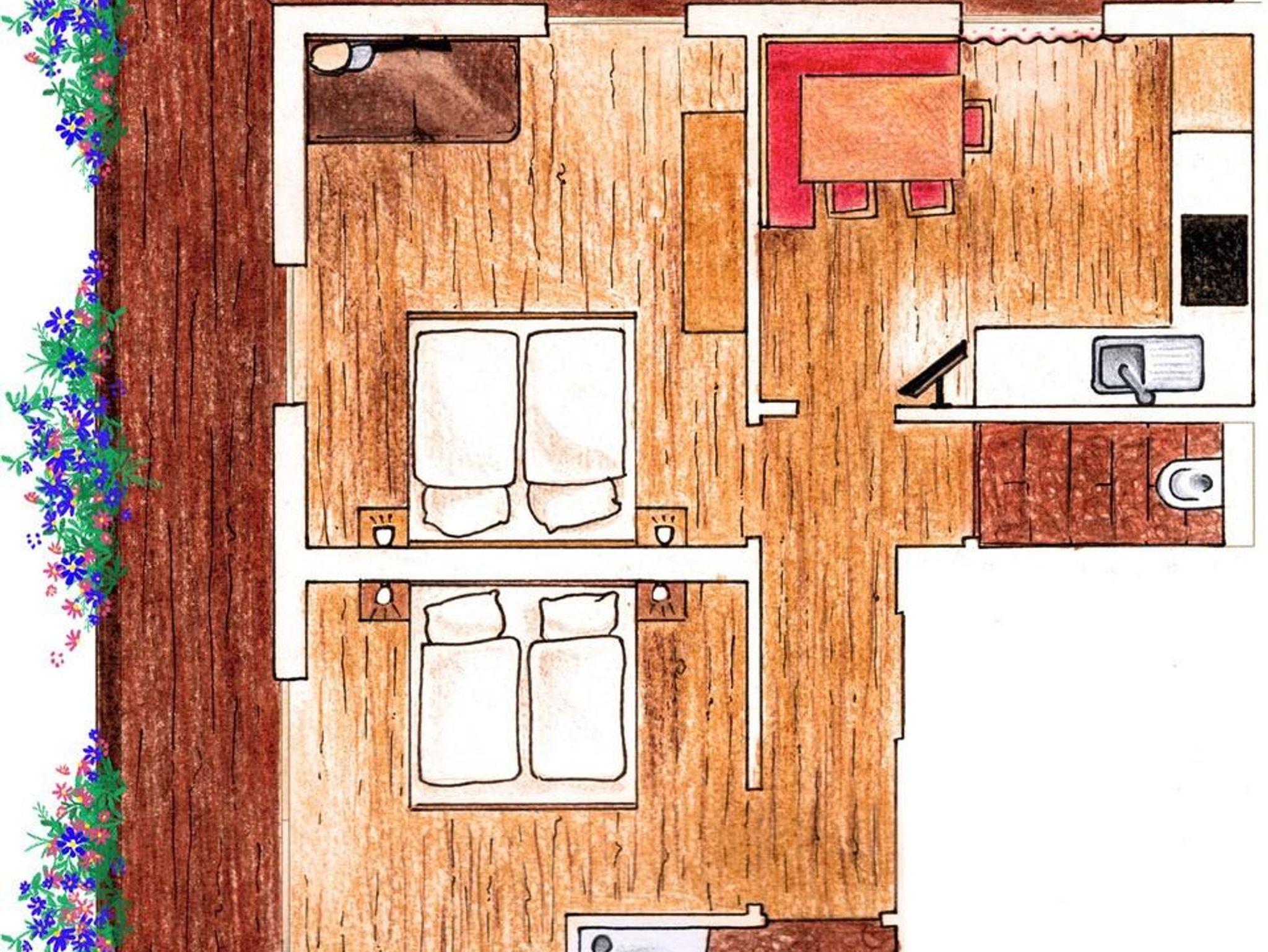 Gemütlich eingerichtete Wohnung mit Balkon und Bergblick, 2 Schlafzimmer, eine geräumige Küche mit Wohnbereich, Dusche/WC,kostenfreies Kabel-TV und WLan. 60m²