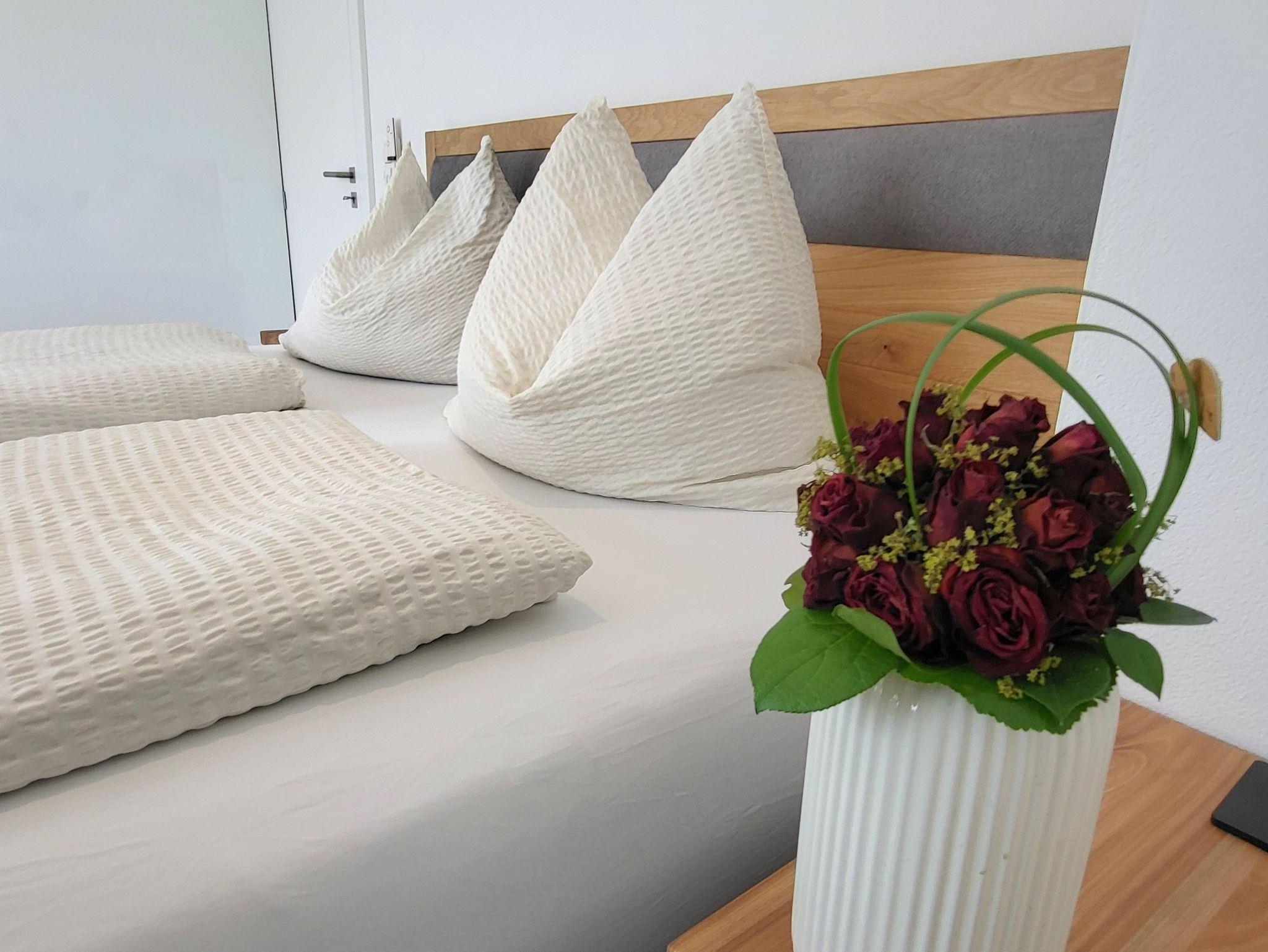 Sonniges, gemütliches Appartement bis 5 Pers. mit 2 Schlafzimmern, 1 Bad mit Dusche/WC, 1 voll ausgestatteten Küche, großer Terrasse, Vorraum; Dampfbackofen, Geschirrspüler, Filter-Kaffemaschine; Genießen Sie Ihren Urlaub in entspannter Atmosphäre.
