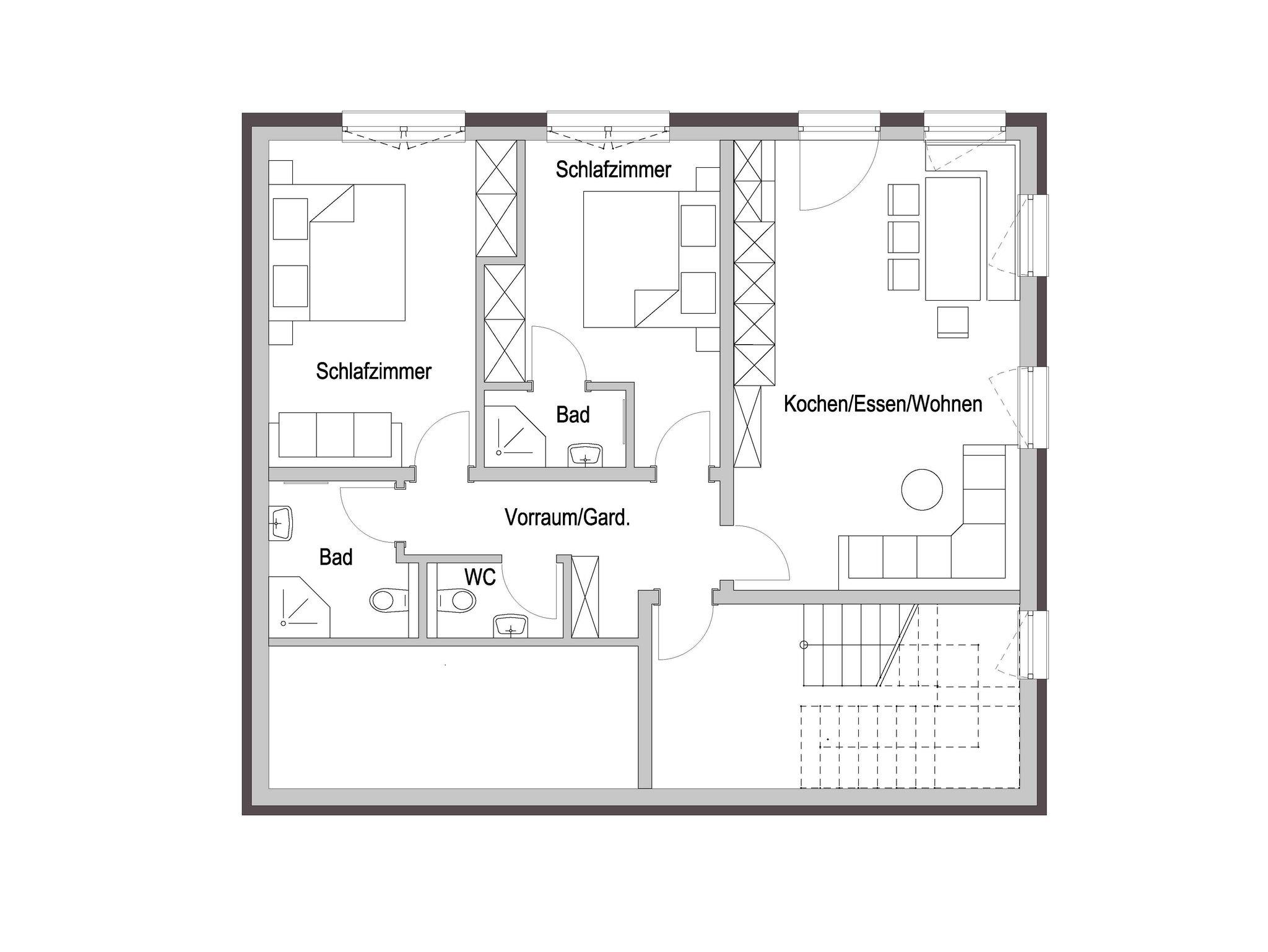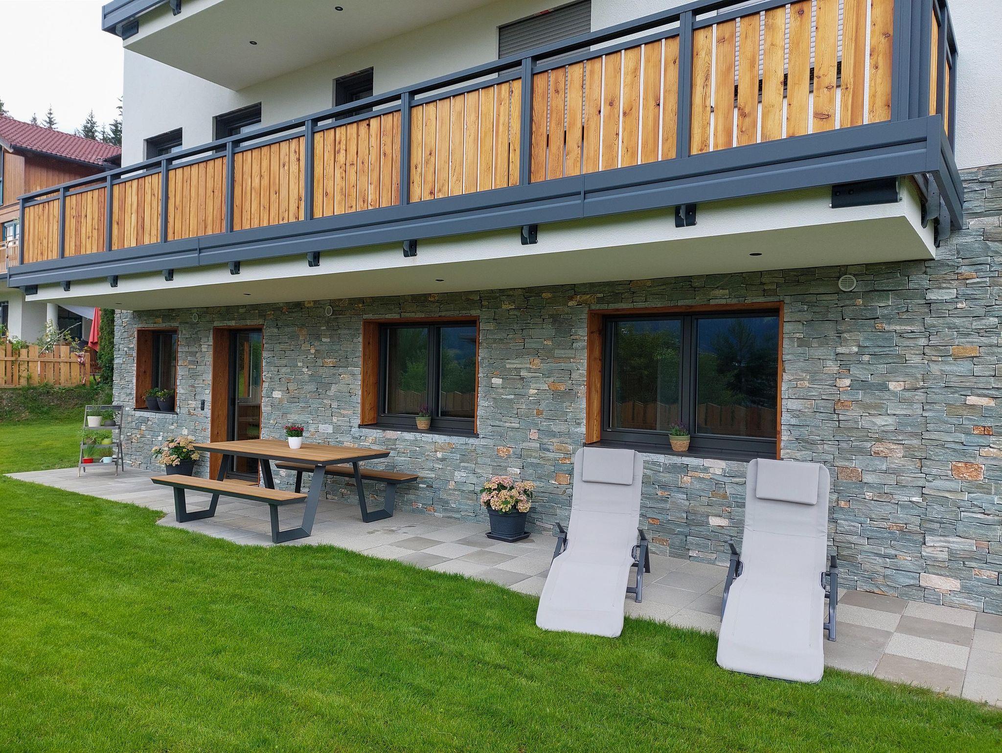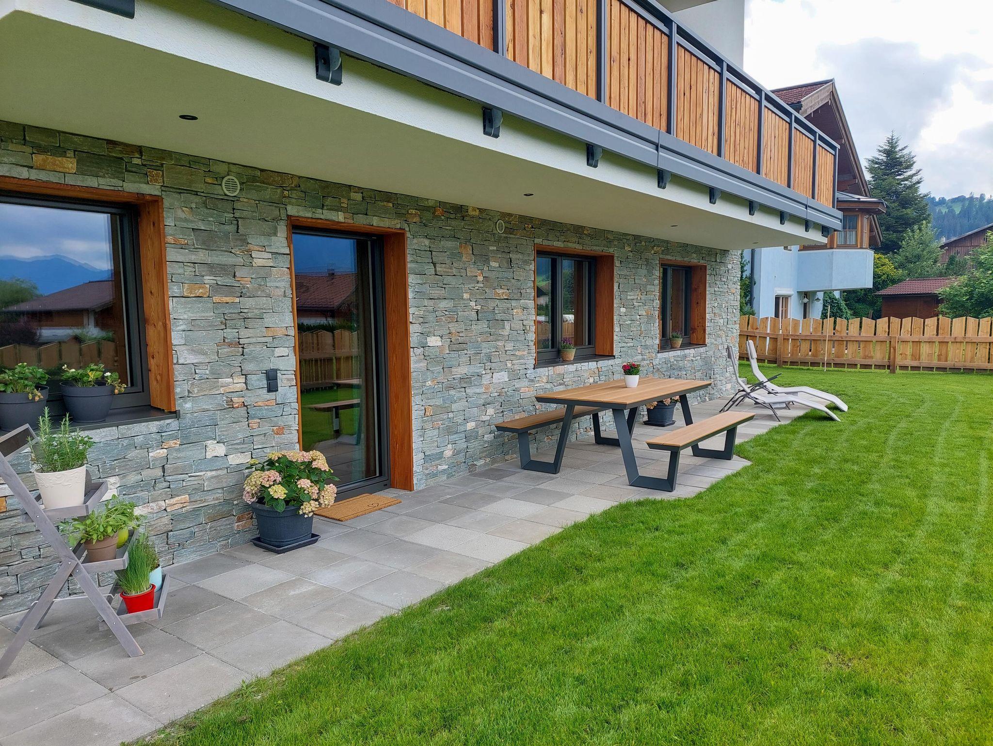Unser Appartement befindet sich im Souterrain unseres Hauses. Dank der Hanglage ist das 70m² große Appartement sehr hell, hat eine eigene Terrasse und Zugang zum Garten.
