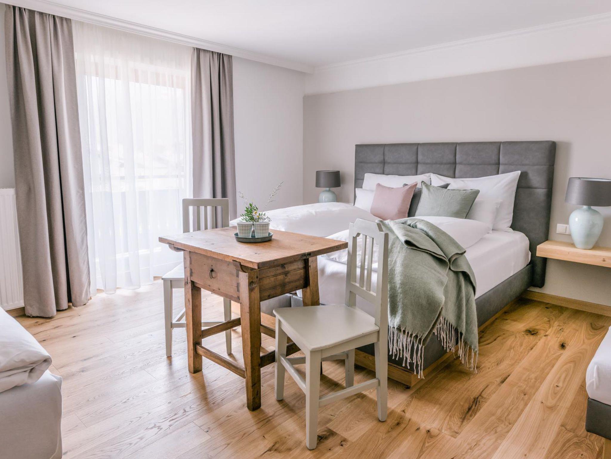 Elf individuell eingerichtete Zimmer im zeitlosen Landhausstil verleihen dem Hotel eine besondere Note. Die Mischung aus alten Bauernmöbeln in Kombination mit moderner Gemütlichkeit haben hier ein kleines Hideaway für Entspannung und Urlaub geschaffen.