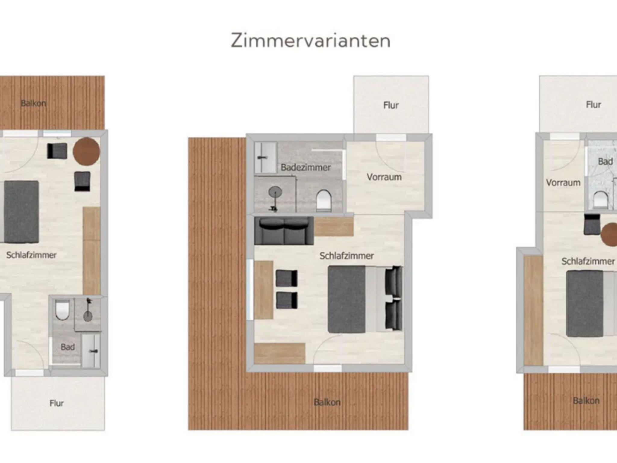 Doppelbett-Zimmer mit DU/WC, Couch, TV, Radiowecker und Balkon.