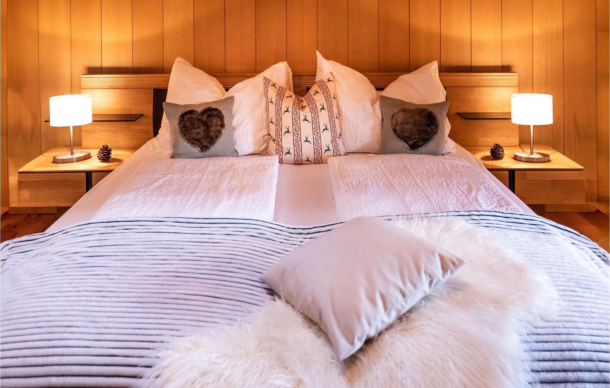 Denne indbydende ferielejlighed med et udsmykket træloft og massive og udsmykkede træmøbler tilbyder hele familien en fantastisk ramme for jeres ferie. Om aftenen kan I varme jer ved den autentiske kakkelovn og fremtrylle lækre måltider i spisekøkkenet. I kan også gå på opdagelse i den fælleshave og grille på den fine, overdækkede terrasse og lægge planer for jeres udflugter og aktiviteter.