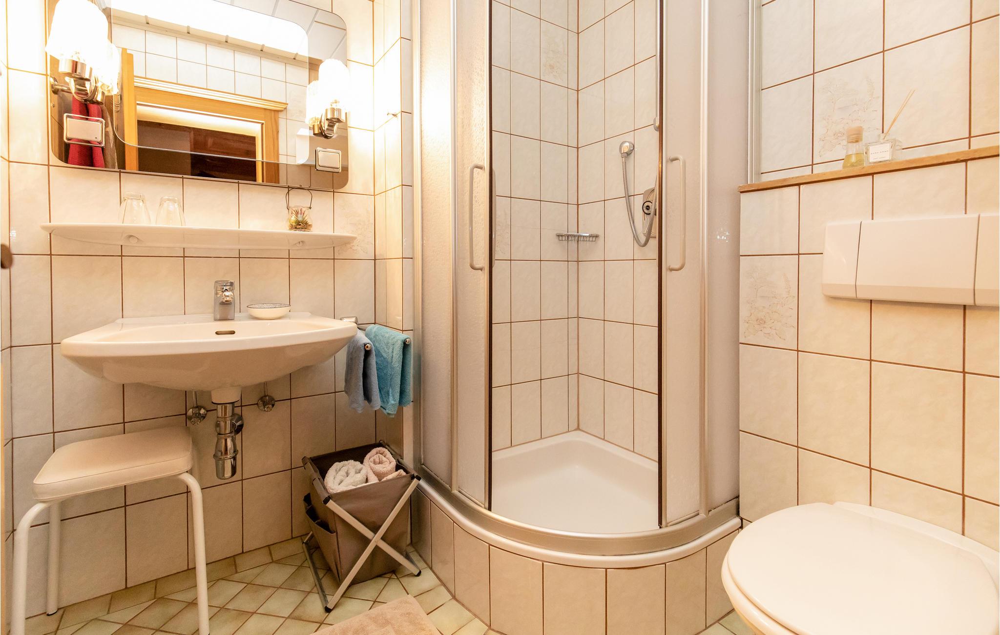 Badeværelse (nr. 1) - WC. Varmt og koldt vand. Bruser