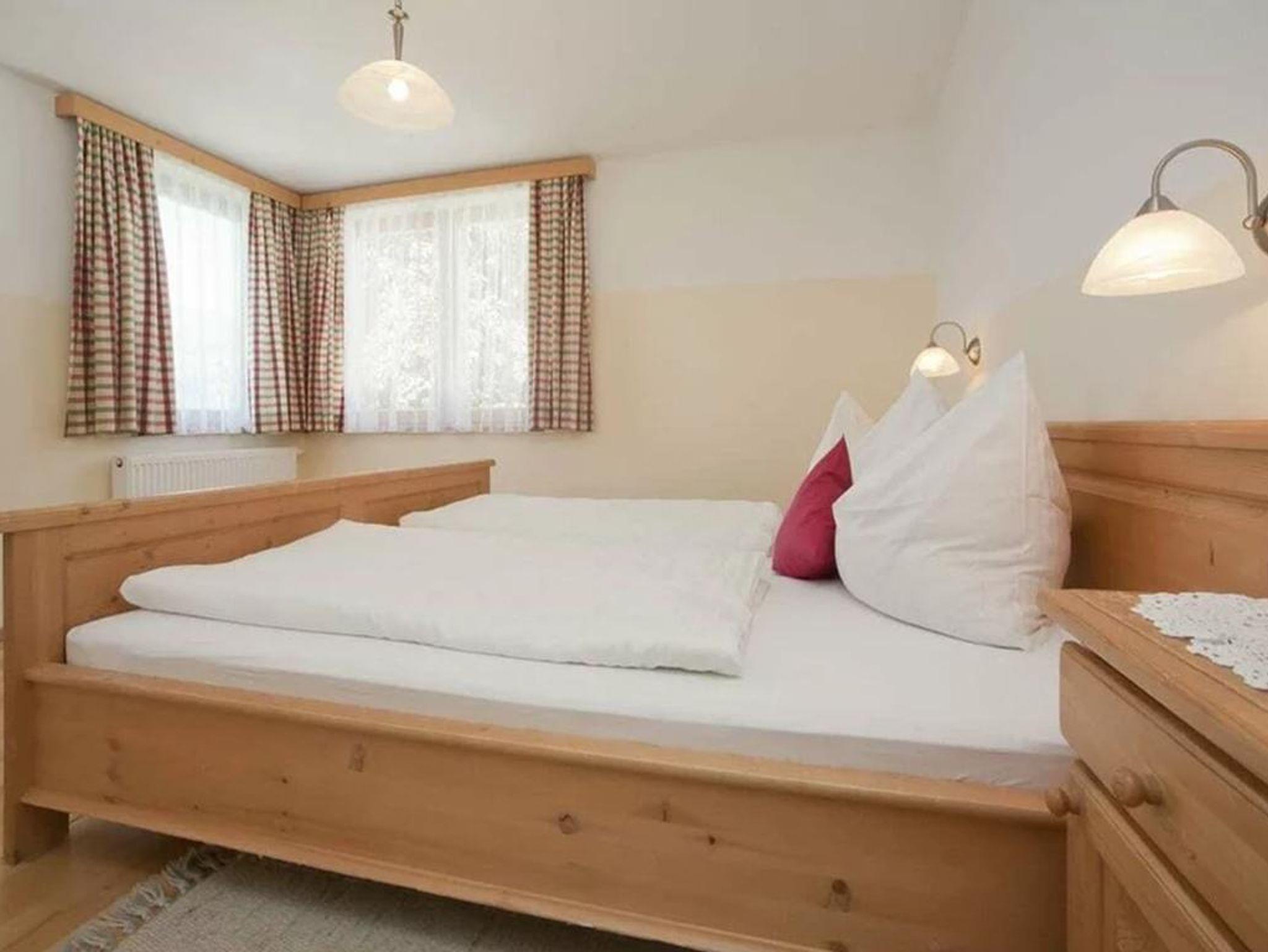 Dieses Doppelzimmer befindet sich im ersten Stock und ist mit Vollholzmöbel, Holzboden und eine von unserem Tischler rustikal gebauten Couch ausgestattet. Das Zimmer bietet einen hervorragenden Blick vom Eckbalkon auf Anger und die umliegende Berge Zetz und Kulm.