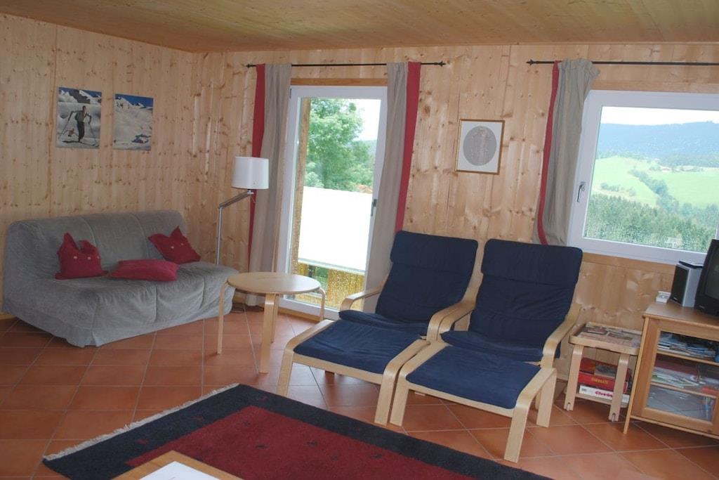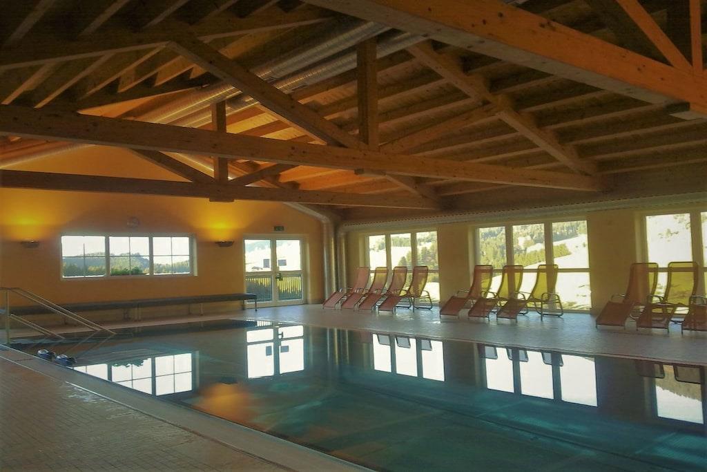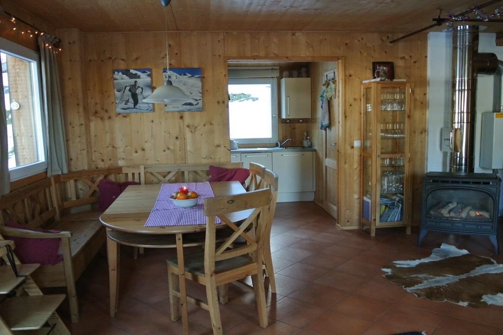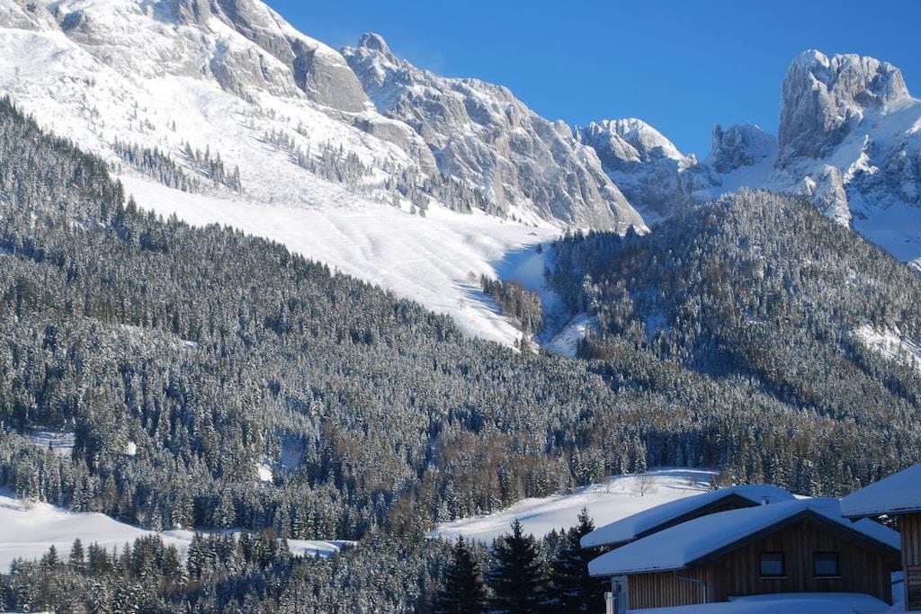 Dette charmerende feriehus, udført i ubehandlet, lyst naturtræ, tilbyder en særlig afslappende og hyggelig hytteatmosfære med sin brændeovn og komfortable siddepladser. Terrasse med grill, gynge, rutsjebane og sandkasse. Fælles indendørs pool, sauna, wellness-område og restaurant. Adgang til husets trappe er mulig selv om vinteren. Huset ligger i en højde af 1000 meter i den alpine ferieby Dachstein-West (et UNESCO-verdensarvssted), et paradis for skiløb, mountainbiking, trekking og vandreture. Indrammet af Dachstein-massivet med Gosaukamm, Bischofsmütze ("Salzburg Dolomitterne") og Tennengebirge-bjergene, ligger det i hjertet af skiområdet med 70 lifter, 160 km fantastiske pister, 14 "fun pister" og freeride-sne og funparker; 215 km langrendsløjper, nogle med projektørlys. Huset ligger cirka 80 meter fra skipisten.
