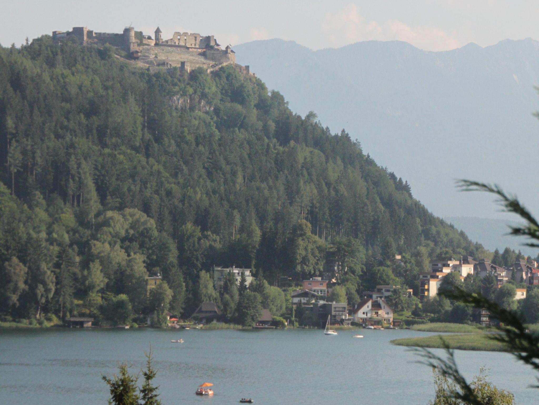 Apartment Burgblick ist südseitig im zweiten Stock gelegen, hat einen traumhaften Blick über den Ossiacher See und die Berge dahinter und hat auch einen Zugang auf einen gemeinschaftlich genutzten großen Balkon. Das Apartment selber ist so konzipiert, dass sich im Schlafraum sowohl das Ehebett als auch 2 Einzelbetten befinden (+Dusche/WC). Im Küchenraum gibt es neben dem Küchenblock mit Herd mit Backrohr, Kühlschrank mit Tiefkühlfach sowie Geschirrspüler, Filter-Kaffeemaschine und Wasserkocher, Tisch, Sessel und eine Couch, die man auch als Einzelbett benutzen könnte.
