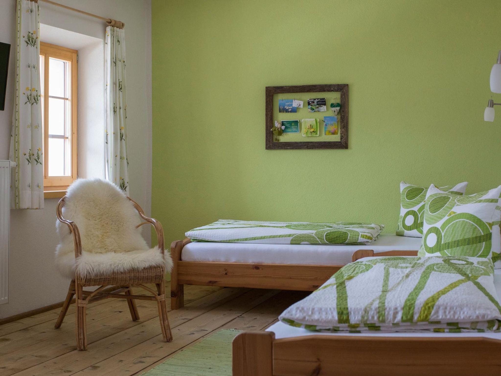 • Im Obergeschoss. Ein Schlafzimmer mit Doppelbett, Bad mit WC und Dusche. Originale Bauernstube mit integrierter Küche, orgineller Sitzecke, Essbereich und ausziehbarer Couch. Zugang zum südseitigen Balkon. Garten, Spielplatz kann mitgenutzt werden.