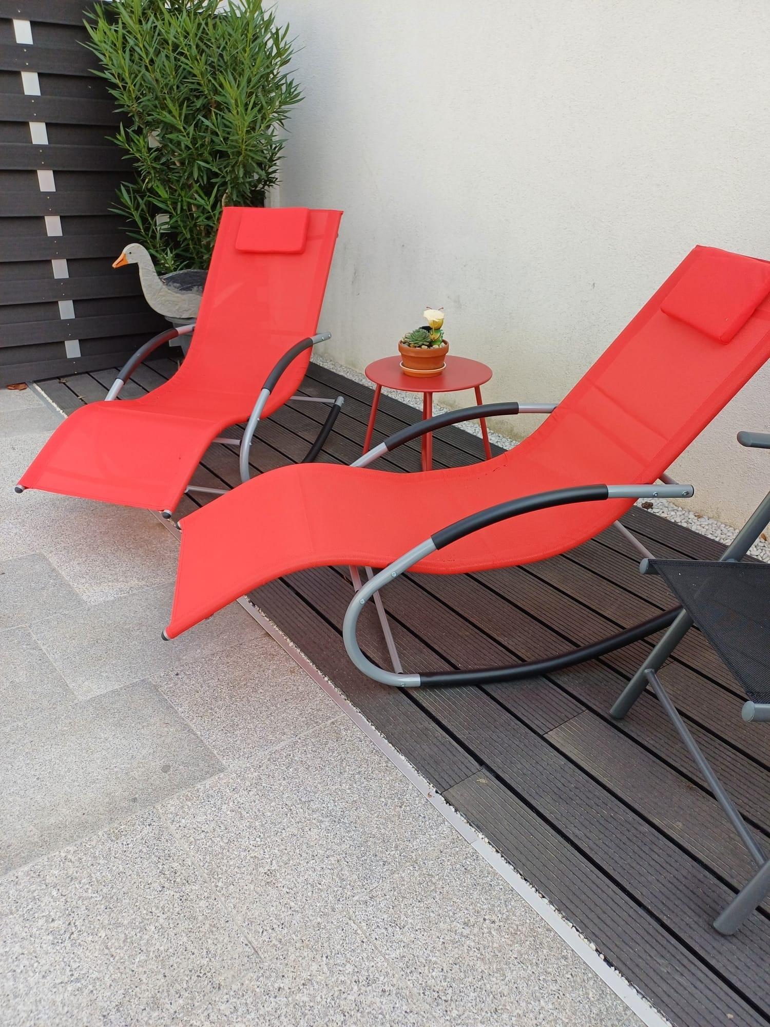 Im Außenbereich befindet sich ein kleiner Swimmingpool und Liegen um nach dem Radfahren sich ein wenig zu entspannen.