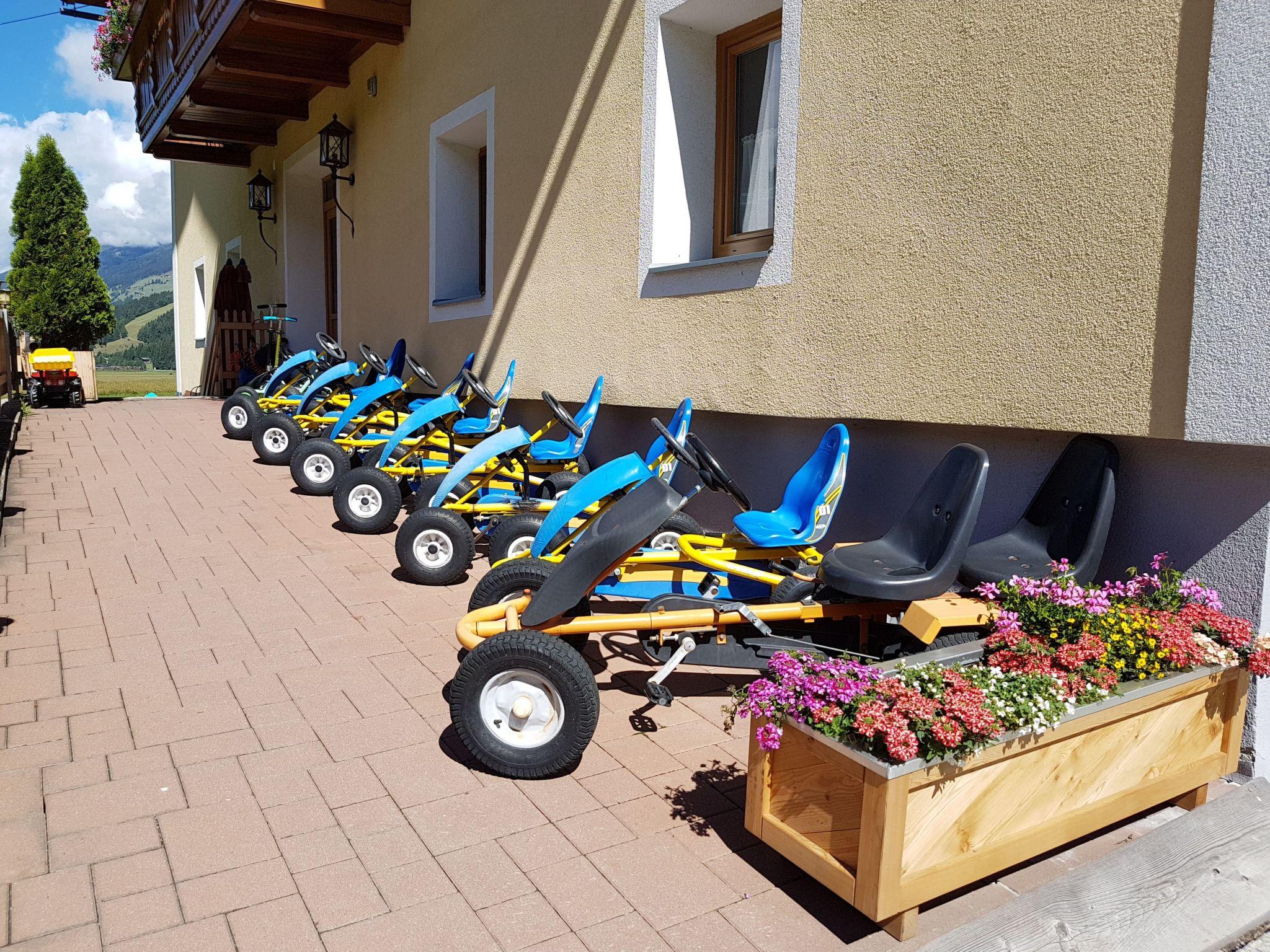 free internet use via WLAN12 bicycles for adults7 children's bicycles2 children's quad bikes for 2-4 years (battery-operated)2 children's police motorbikes for 2-4 years (battery-operated)6 mountain go-karts from 6 years2 mountain go-karts double-seater from 6 years6 go-karts for 3 - 6 years2 tricycles with push barChildren's sledges, bobsleds and sledges for adults