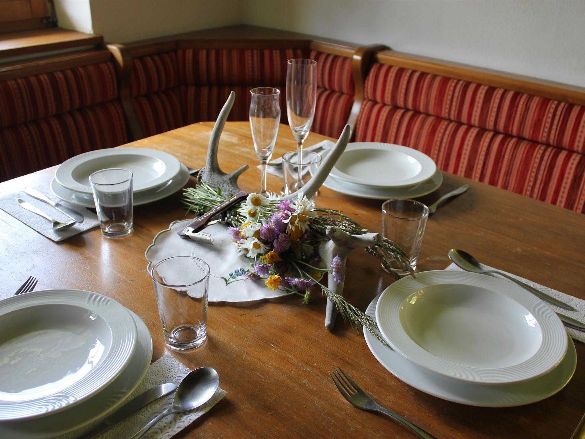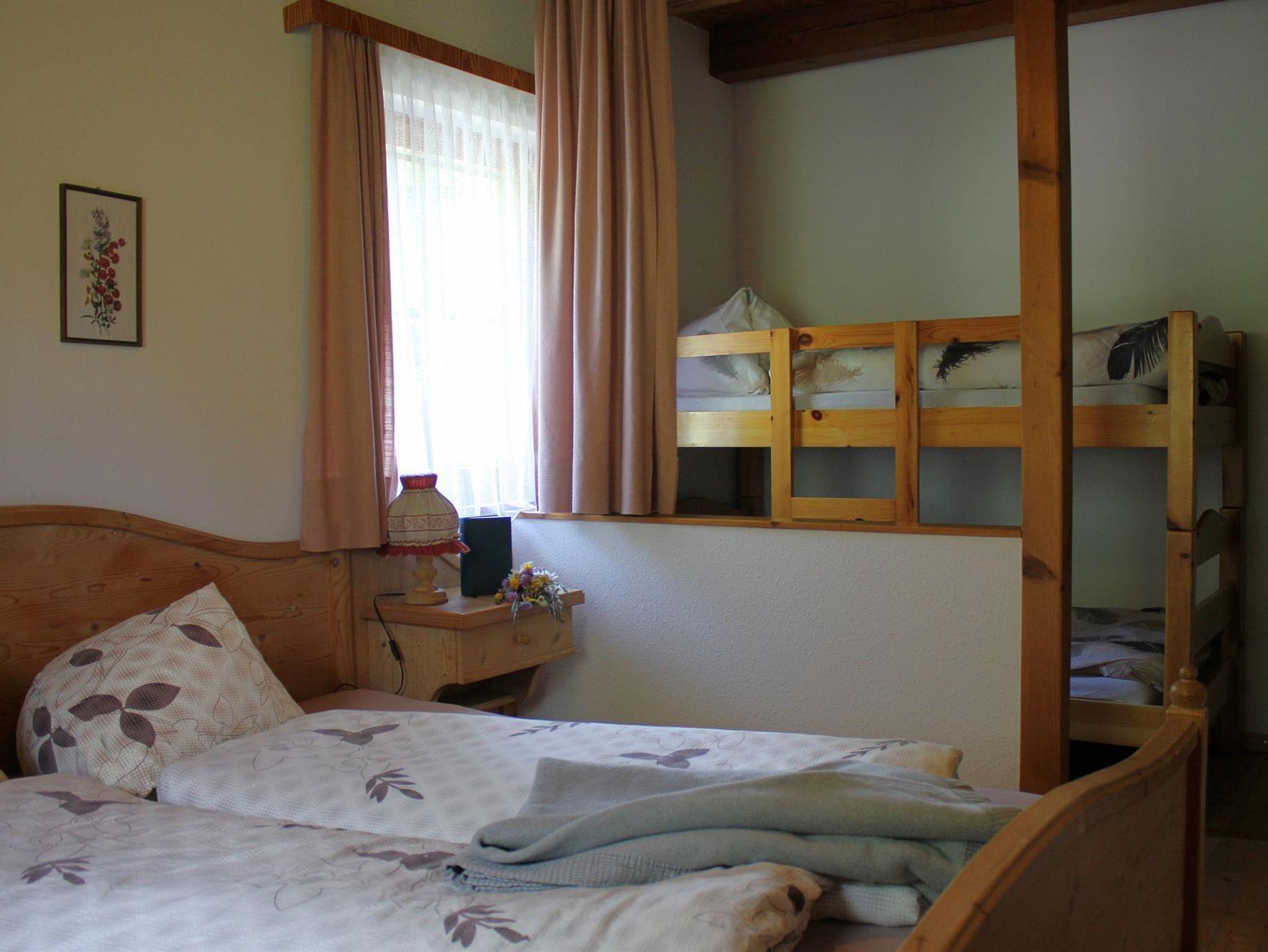 Appartement E ist 45 m2 groß und befindet sich im obersten Stockwerk des Ferienhauses. Die Dachgeschoß Wohnung verfügt über ein großes Bad mit Dusche und WC, Küchenzeile. Wohn-Essraum mit Eckbank und Kommode, sowie einem Schlafraum mit Doppelbett und Stockbett. Der Balkon Richtung Süden und Blick auf die Skipiste garantieren einen sonnigen und erholsamen Urlaub.