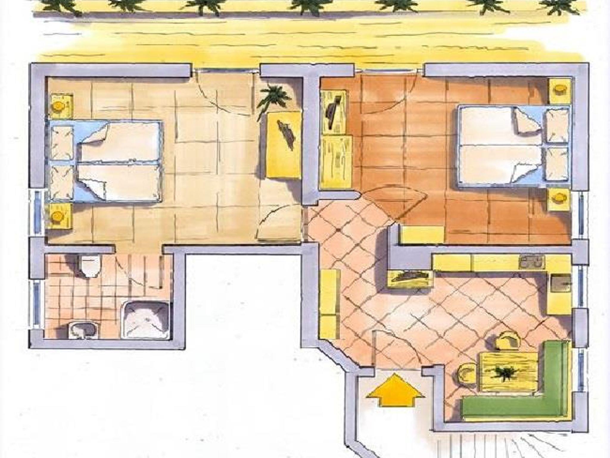 Nordbalkon 2 Schlafzimmer mit Doppelbetten 1 Dusche mit WC, Fön 1 große Wohnküche mit Sitzecke, Sat-TV, Geschirrspüler, E-Herd mit Backrohr, Mikrowelle, Kaffeemaschine, Kühlschrank