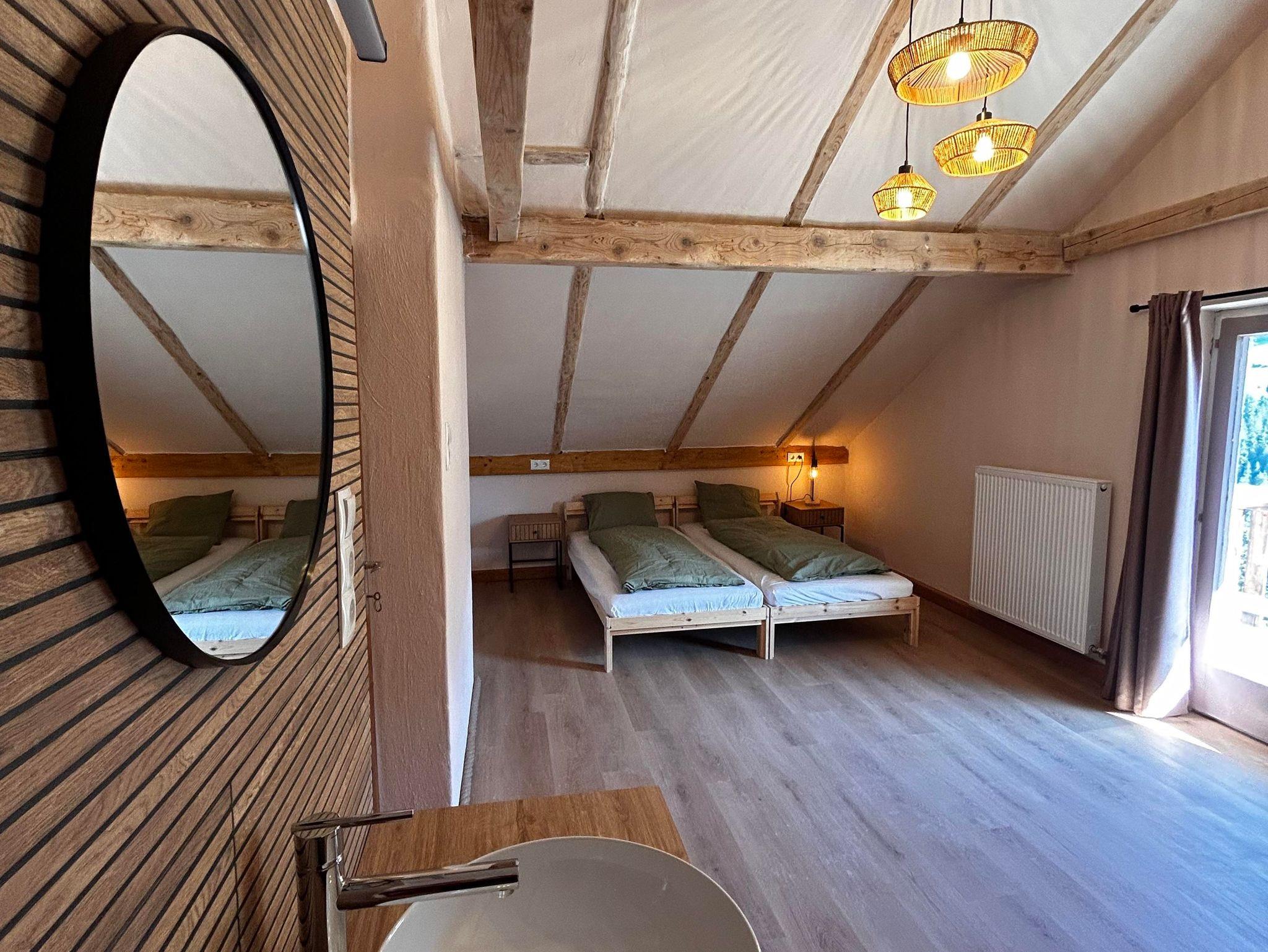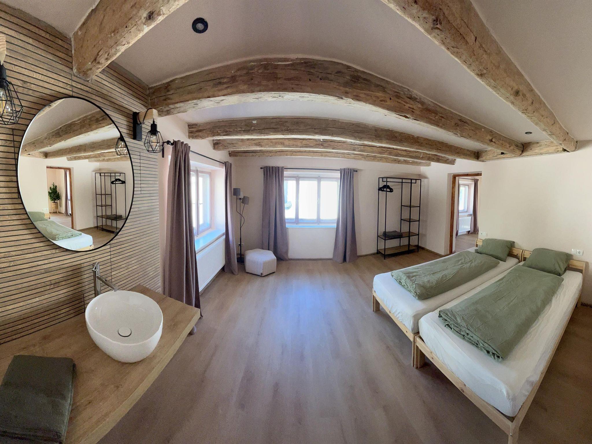 Willkommen in meinem liebevoll gestalteten Haus in Arzl. Platz für bis zu 10 Gäste: fünf Zimmer (vier mit Balkon & Panoramablick), alle als Doppelbett oder zwei Einzelbetten buchbar; Baby- oder Zusatzbett auf Wunsch. In jedem Zimmer ein eigenes Waschbecken. Herzstück ist die große Wohnküche mit amerikanischem Kühlschrank, 5-Platten-Herd, großem Ofen und Esstisch für 10; daneben eine gemütliche Sitzecke mit Holzofen. Im Erdgeschoss: Duschbereich mit drei Kabinen und zwei Waschbecken. WCs: zwei im Untergeschoss bei der Wohnküche, eines im Obergeschoss bei den Schlafzimmern. Waschraum auf Anfrage. Highlight ist der große Garten – ideal für deine Gruppe, um zusammenzukommen und den Tag ausklingen zu lassen.