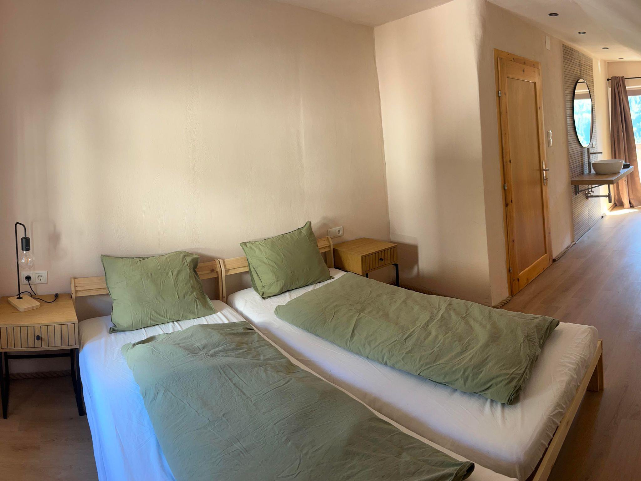 Das Haus bietet fünf individuell eingerichtete Zimmer, vier davon mit Balkon und Panoramablick. Alle Zimmer können mit Doppelbett oder zwei Einzelbetten gebucht werden; ein Babybett stelle ich auf Wunsch gerne bereit. In jedem Zimmer gibt es zudem ein eigenes Waschbecken für etwas Privatsphäre.