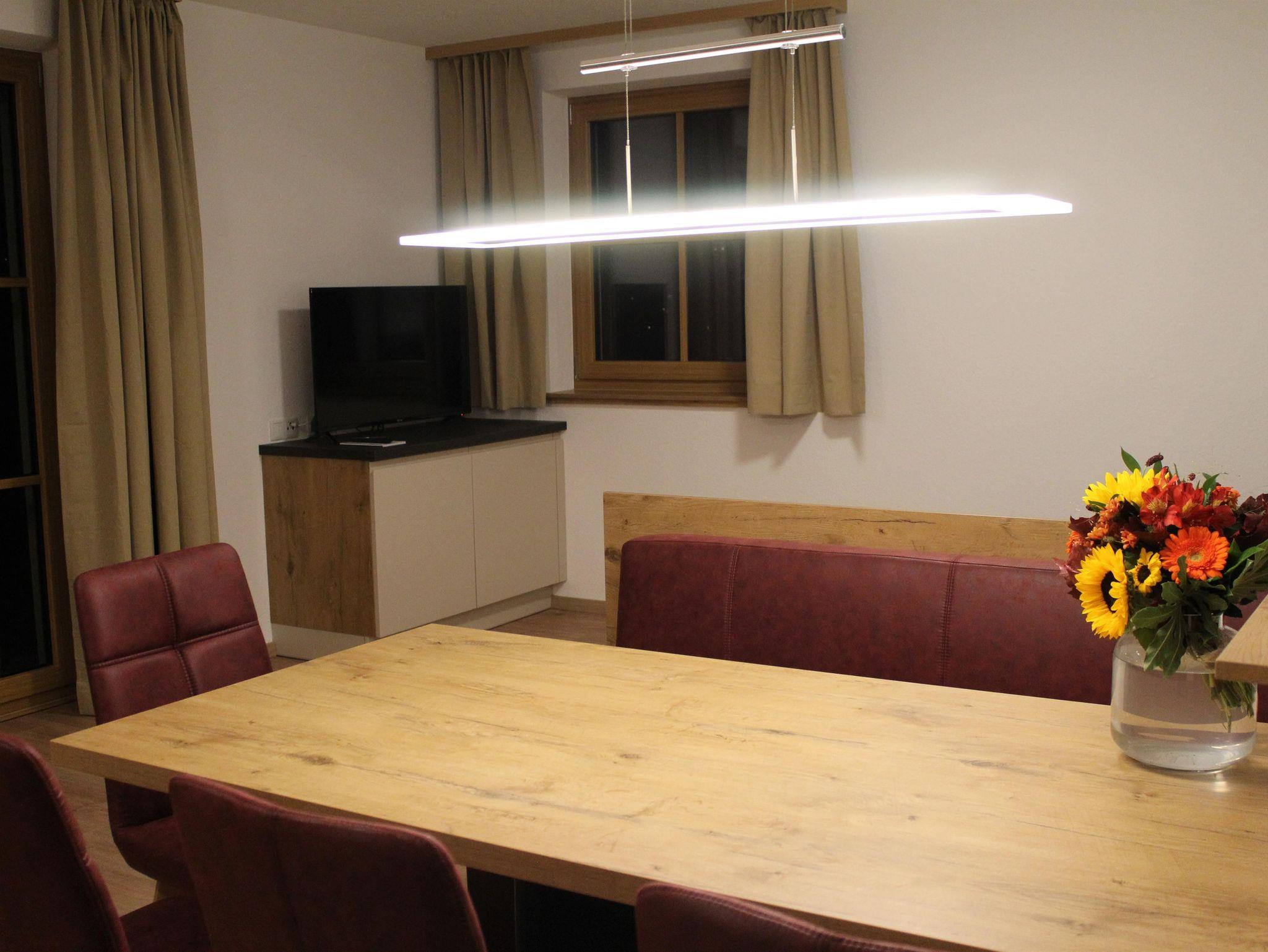Neue Ferienwohnung Tschirgantblick für 6 Personen (2 Doppelbettzimmer, ein Stockbett und ein Schlafsofa) (Auf Anfrage können bis zu 8 Personen in dieser FW untergebracht werden) Unsere Küche ist mit Cerankochfeld, Dunstabzug, Backofen, Kühlschrank inkl. Gefrierfach, Wasserkoscher, Geschirrspüler, Kapselkaffeemaschine, Radio sowie mit allen notwenigen Kochutensilien ausgestattet. Ein Esstisch mit ausreichend Sitzmöglichkeiten lädt zum gemeinsamen Essen ein. Das Schlafsofa mit Flat TV im Wohn- Essbereich bietet zusätzlich Platz zum Entspannen. Zudem verfügen Sie über den Wohn- Essbereich einen Zugang zu Ihrer privaten Terrasse mit Gartenzugang. (Grillmöglichkeit vorhanden, Spielplatz vorhanden) Beide Schlafzimmer verfügen über ein großes Doppelbett mit Kleiderschrank. Zusätzlich befindet sich in einem der beiden Zimmer ein Stockbett (Bettwäsche vorhanden). Auf Anfrage wird selbstverständlich ein Babybett für Sie vorbereitet. Im Badezimmer verfügen Sie über eine Regentusche, Fön und ausreichend Handtücher. Das WC ist separat und vom Badezimmer abgetrennt (WC-Papier vorhanden). Weiters können Sie ihre Ski, Ski-Schuhe, Rodeln, Fahrräder ect. im Hauseigenen Skiraum (ebenerdiger Zugang) lagern. Natürlich können Sie auch kostenfrei unser WLAN/Wifi nutzen. Parkplätze befinden sich direkt vor dem Apartment.