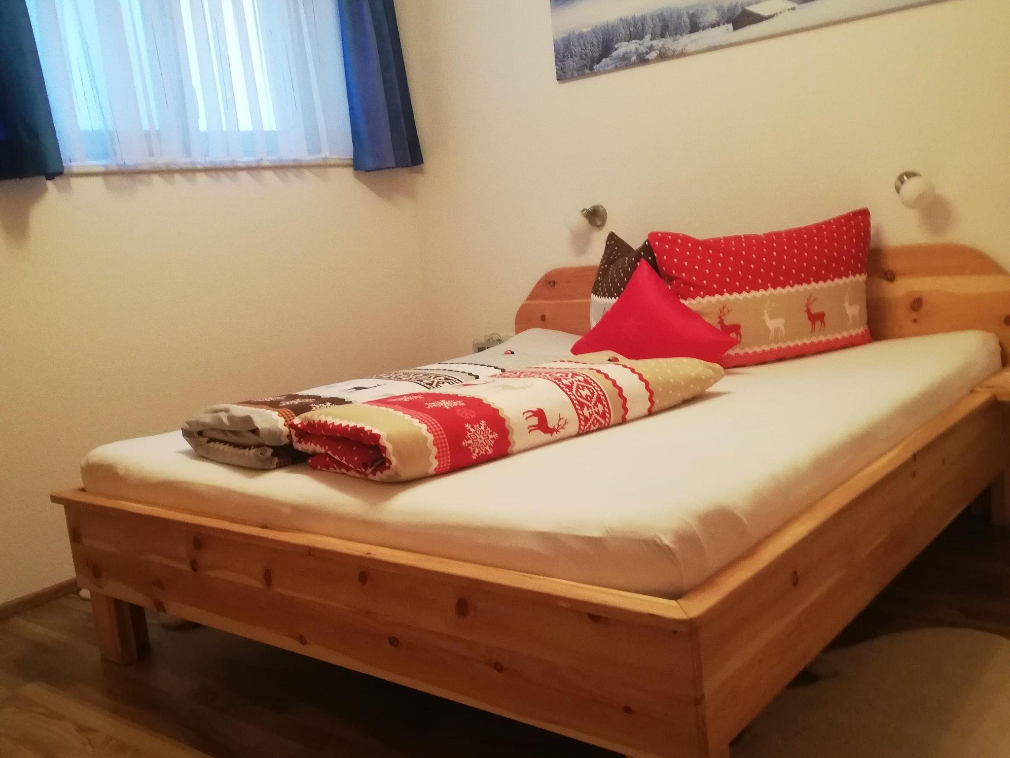 Eigener Eingang zum Apartment und gratis W-LAN/Wifi. Die Küche ist mit einem Küchenblock, vielen Küchenutensilien, (sowie Salz, Pfeffer, Zucker, versch. Tees, Spülmittel, Geschirrspültabs, Spül- und Geschirrtücher, usw.) 4 Platten Herd, Backofen, Dampfabzug, Kühlschrank mit Gefrierfach, Geschirrspüler, Kaffeemaschine, Toaster, Stab und Handmixer, Wasserkocher, großem Tisch mit Eckbank, und einem SAT TV ausgestattet. Unser Brötchenservice von Montag bis Samstag(außer Feiertage) verwöhnt sie mit frischem Gebäck zum Frühstück! Das Wohnzimmer ist mit einem gemütlichen Ecksofa und Tischchen für nette Spielabende, sowie einem großen SAT Fernseher ausgestattet. Das Apart bietet drei separate Vollholz Schlafzimmer. Zwei Zimmer sind mit einer Verbindungstür verbunden. Bad mit Dusche, WC und Doppelwaschbecken, WC extra, Garderobe, Terrasse, Liegewiese.