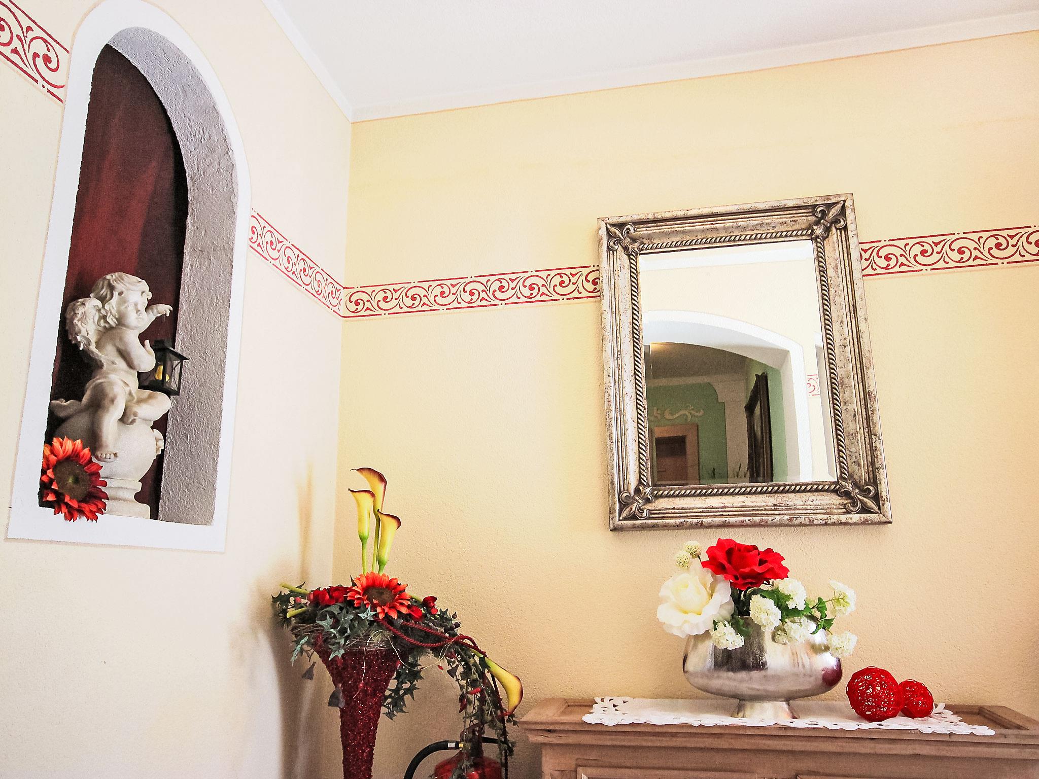"Marina", 4-room apartment 120 m2 on 1st floor. Very beautiful and tasteful furnishings: entrance hall. 1 room with 1 bed and 1 double bed. Exit to the balcony. 1 room with 2 beds and 1 double bed. Exit to the balcony. 1 room with 1 bed, 1 double bed and satellite TV (flat screen). Large living/dining room with dining nook and satellite TV. Open kitchen (oven, dishwasher, 4 ceramic glass hob hotplates, microwave). Shower, shower/WC, sep. WC. Large balcony, small balcony. Balcony furniture, box-room. Very beautiful view of the mountains and the countryside. Facilities: Internet (WiFi, free). Please note: smoke alarm.