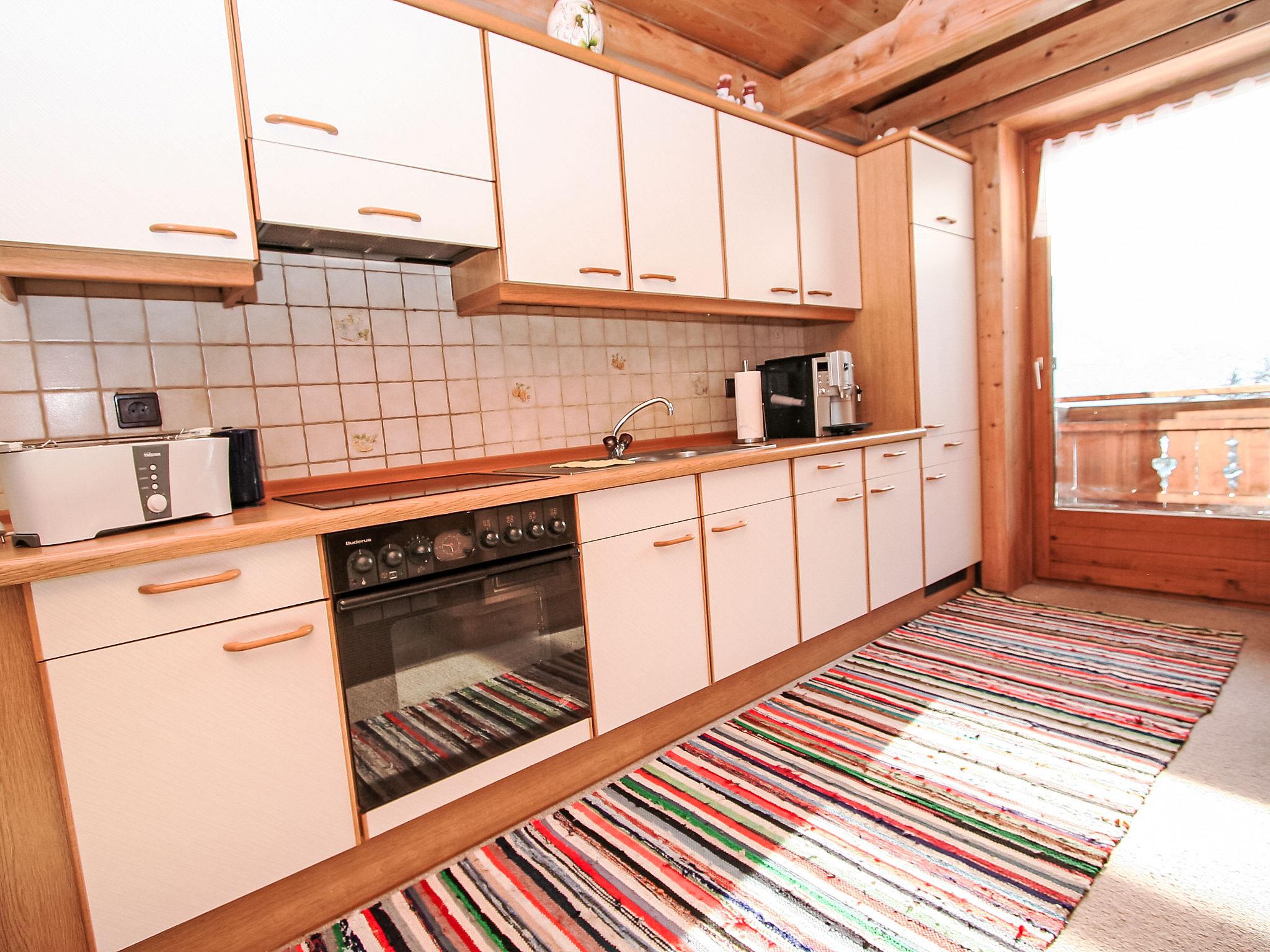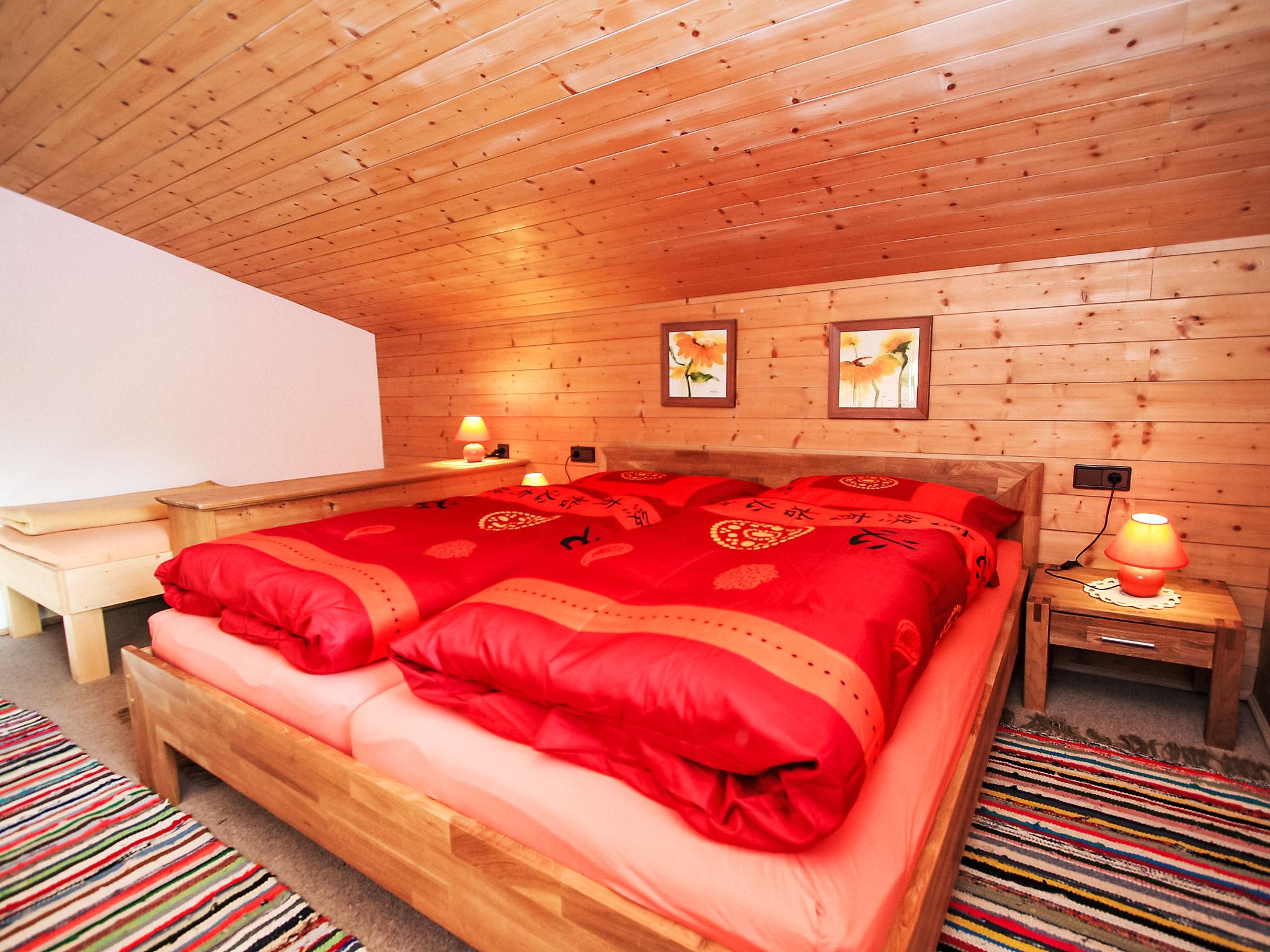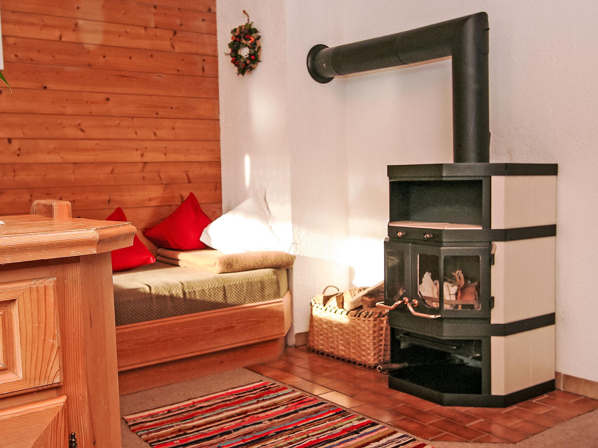 4-room apartment 90 m2, on the top floor. Partly with sloping ceilings, cosy furnishings: entrance hall. 1 room with 1 x 2 bunk beds. 2 rooms, each room with 1 bed and 1 double bed. Large kitchen-/living room (oven, dishwasher, 4 ceramic glass hob hotplates) with 1 sofabed, Scandinavian wood stove, dining nook and satellite TV (flat screen), radio. Exit to the balcony. Shower, sep. WC. Large balcony. Balcony furniture. Marvellous panoramic view of the mountains, the valley and the countryside. Facilities: hair dryer. Internet (WiFi, free). Please note: suitable for families. Smoke alarm. Saeco fully automatic coffee machine and filter coffee machine available.