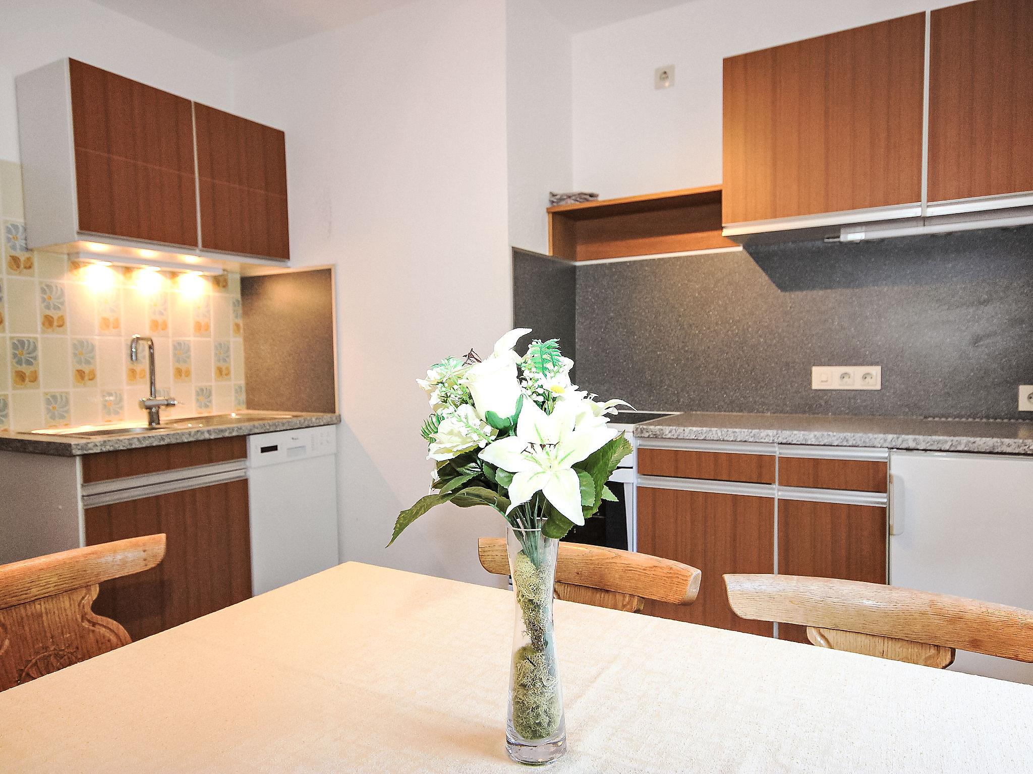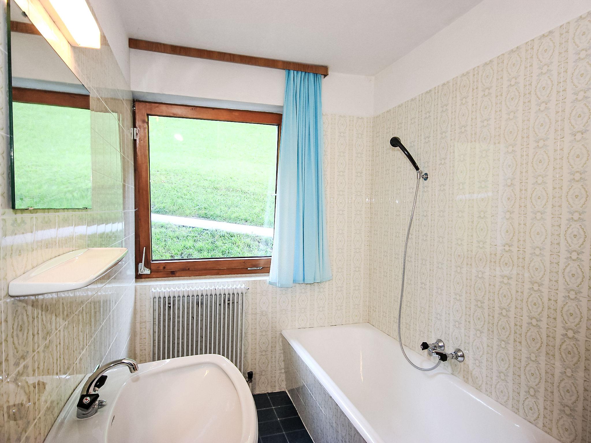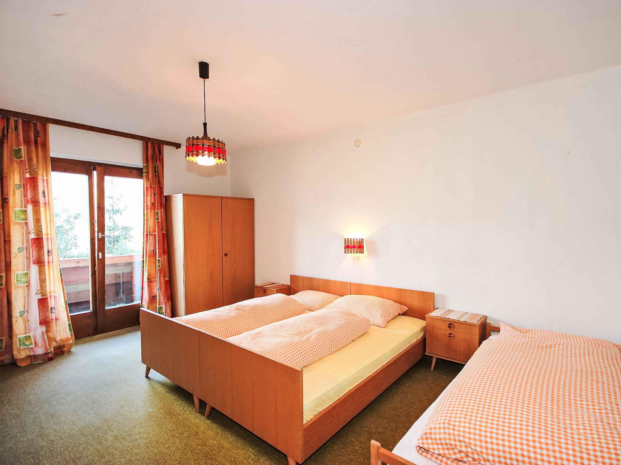 4-room apartment 100 m2 on 2nd floor. Spacious, simple furnishings: entrance hall. Living room with satellite TV (flat screen), radio and CD-player. Exit to the balcony. 2 rooms, each room with 1 sofabed, 1 double bed and hand-basin. Exit to the balcony. 1 room with 1 double sofabed, 1 double bed and hand-basin. Exit to the balcony. Kitchen (oven, dishwasher, 4 ceramic glass hob hotplates). Bath/shower, sep. WC. Large balcony, east facing position and south facing position. Marvellous panoramic view of the mountains, the valley and the countryside. Facilities: Internet (WiFi, free). Please note: non-smokers only. Maximum 2 pets/ dogs allowed. Pets are only allowed in summer. No pets in winter.
