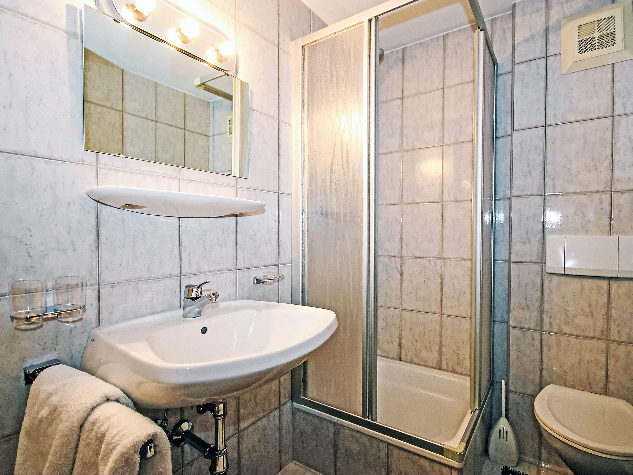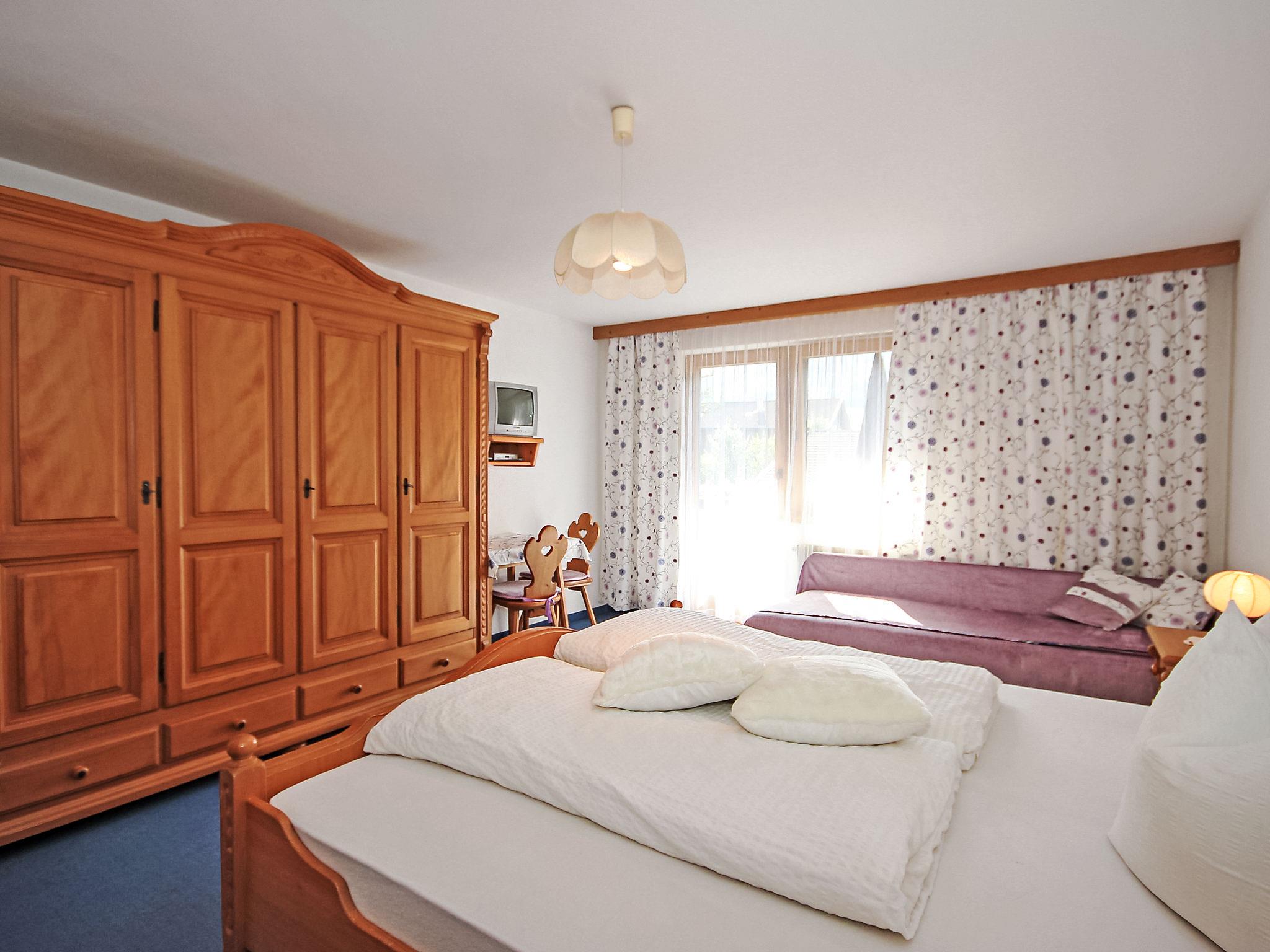 3-room apartment 75 m2 on 2nd floor. Cosy furnishings: entrance hall. 1 room with 1 sofabed, 1 double bed, shower/WC and satellite TV (flat screen). Exit to the balcony. 1 room with 1 sofabed, 1 double bed and satellite TV (flat screen). Exit to the balcony. Small kitchen-/living room (4 hot plates, oven, dishwasher, toaster) with dining table. Exit to the balcony. Shower/WC. 2 balconies 10 m2. Balcony furniture, deck chairs. Beautiful view of the mountains, the garden and the countryside. Facilities: hair dryer. Please note: non-smokers only.