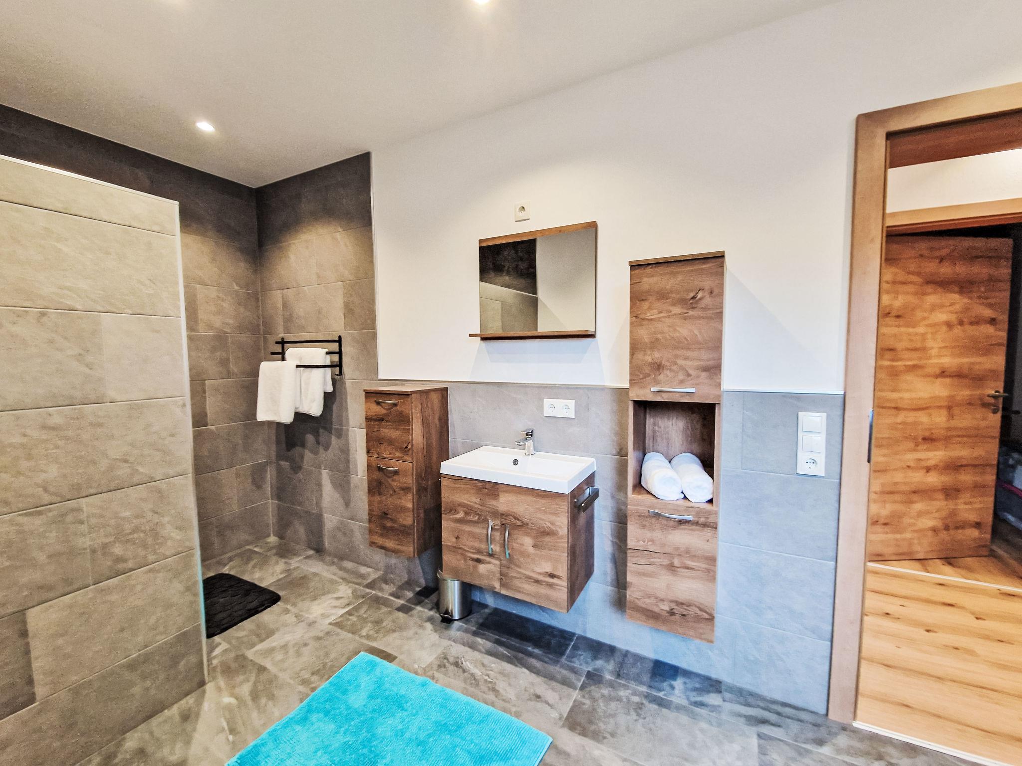 "2 Zimmer", 2-room apartment 65 m2 on 2 levels, on the ground floor. Modern and cosy furnishings: living room with dining nook and TV (flat screen). 1 room with 2 beds and 1 double bed. Open kitchen (oven, dishwasher, 4 ceramic glass hob hotplates, toaster, kettle, electric coffee machine). Shower, sep. WC. Underfloor heating. Terrace. Terrace furniture. Facilities: Internet (WiFi, free). Please note: non-smokers only. Smoke alarm.