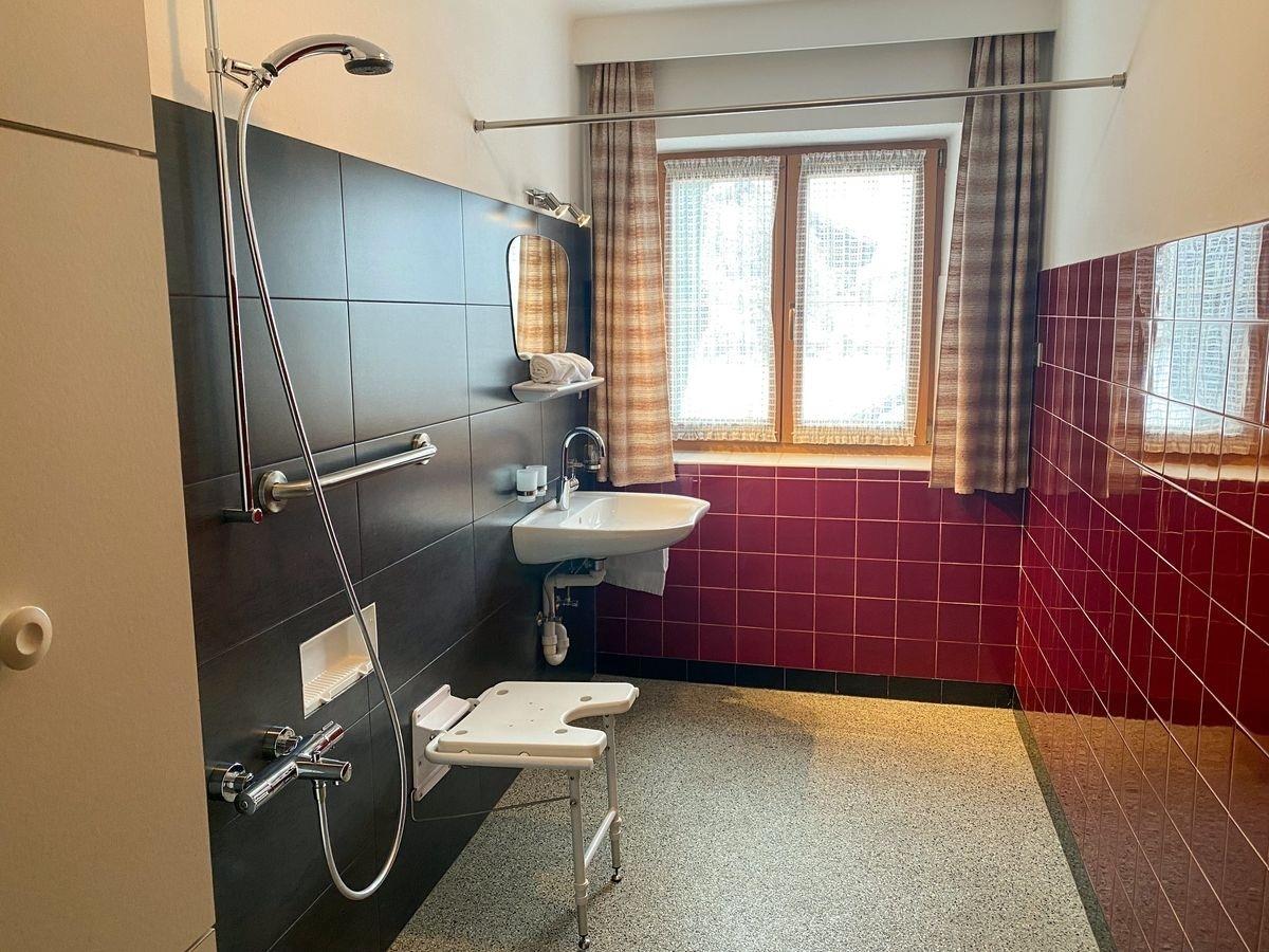 1 Badezimmer mit Dusche und Waschbecken