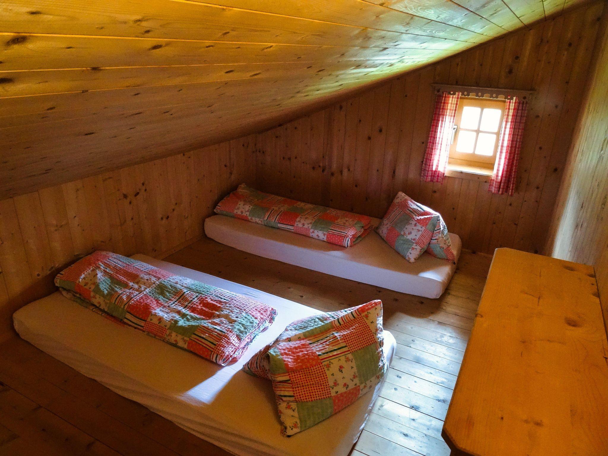 • 4 kleinere, in die Dachschräge gebaute Zimmer sind mit Matratzen ausgestattet und bieten Platz für je 2 Personen.