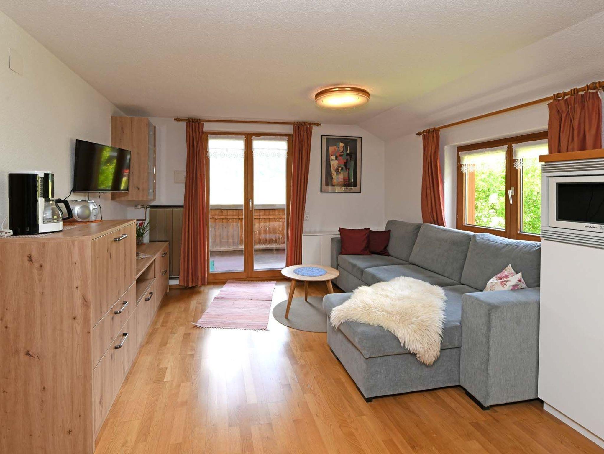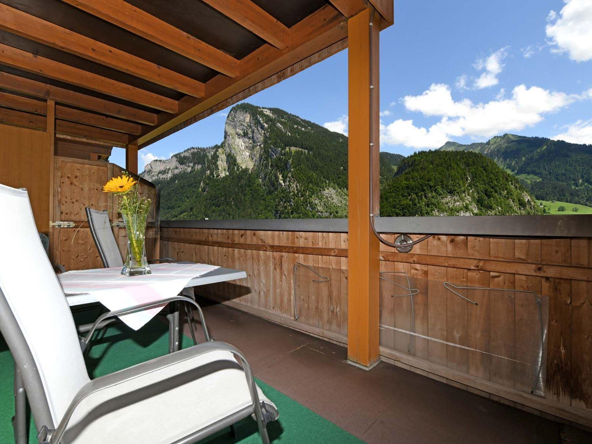 Diese Wohnung bietet Platz für 2-3 Personen und ist mit einem Doppelzimmer, einem Ausziehsofa für eine dritte Person sowie einem großem Balkon mit schönem Blick in unsere Bergwelt ausgestattet. Die Küche ist gut ausgestattet.