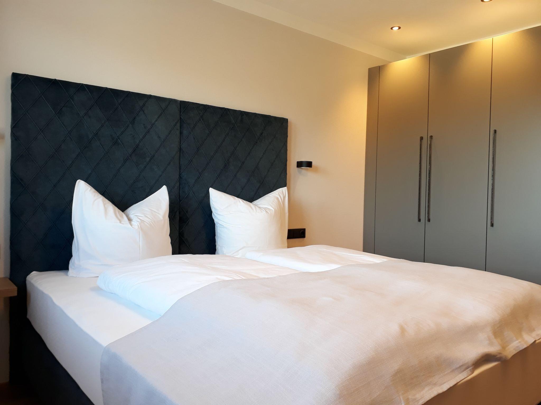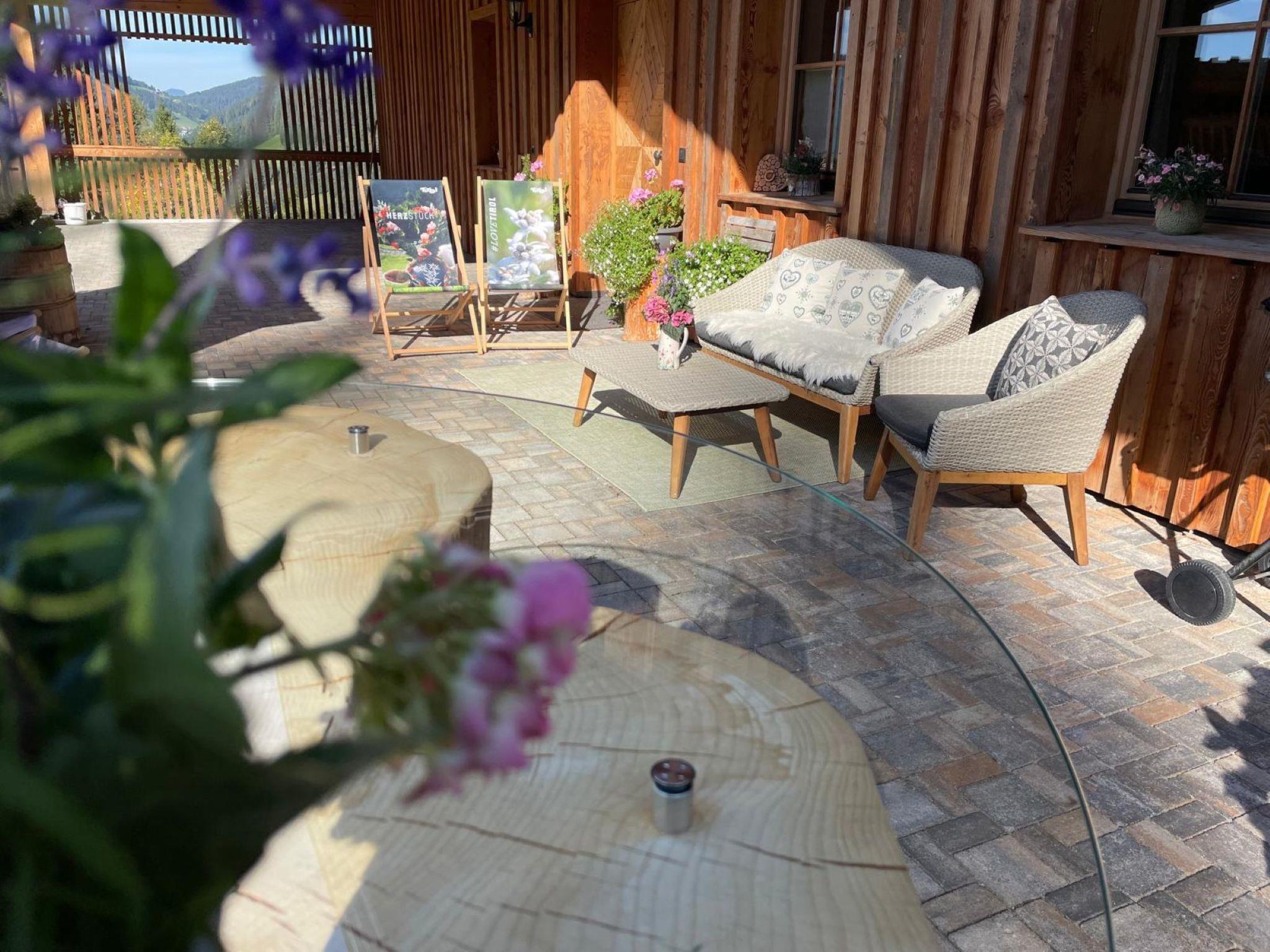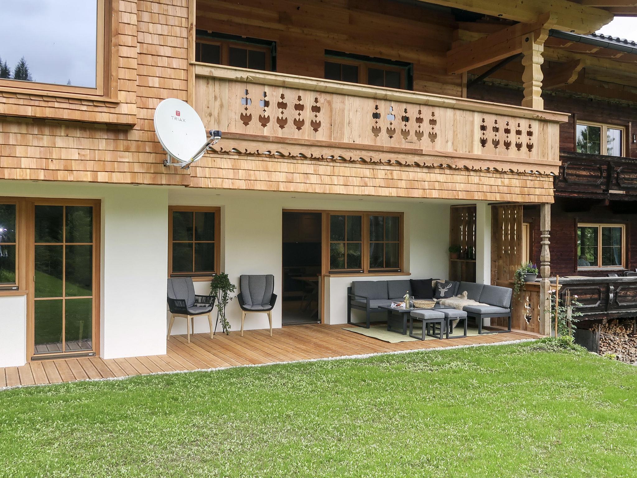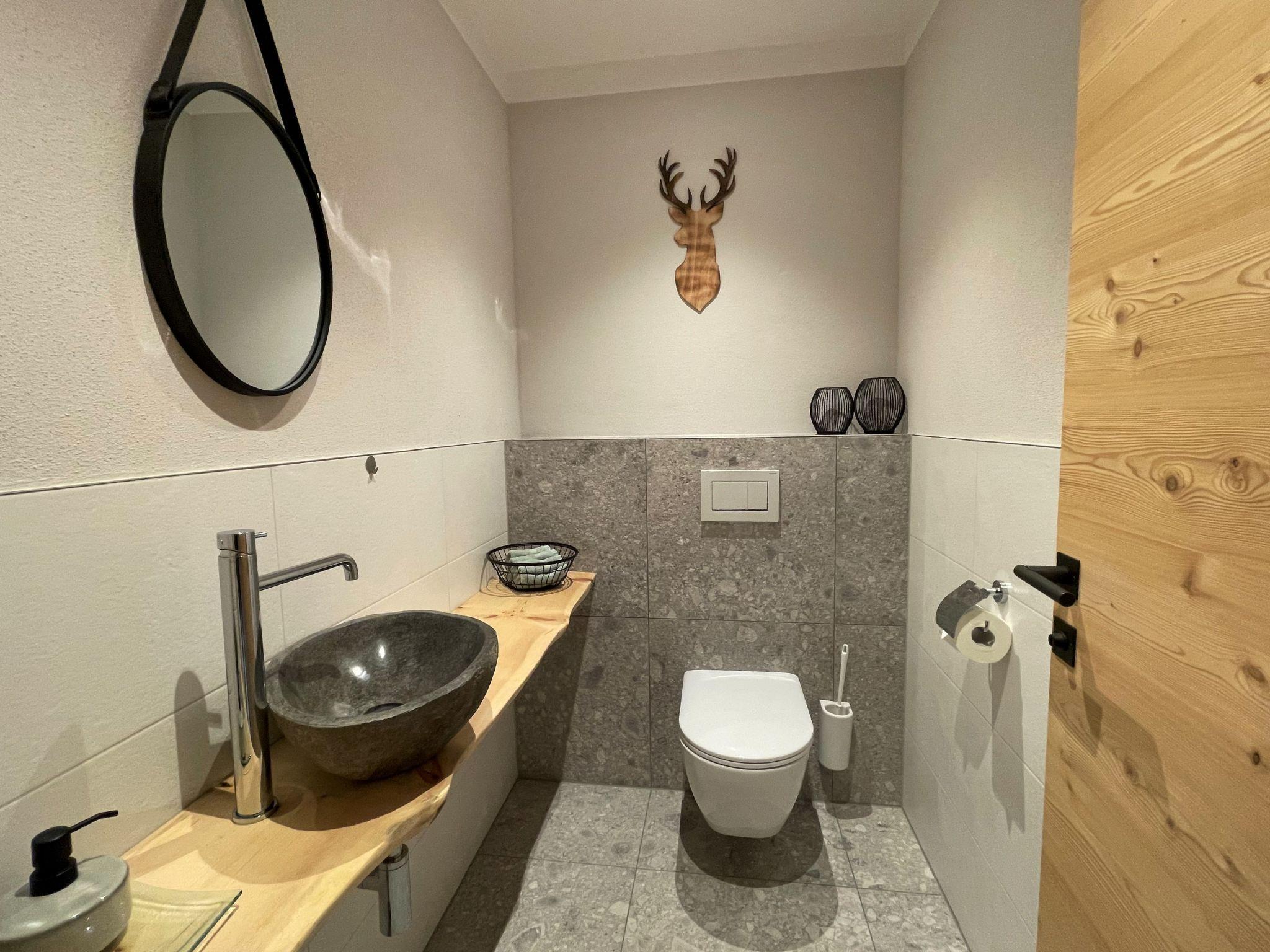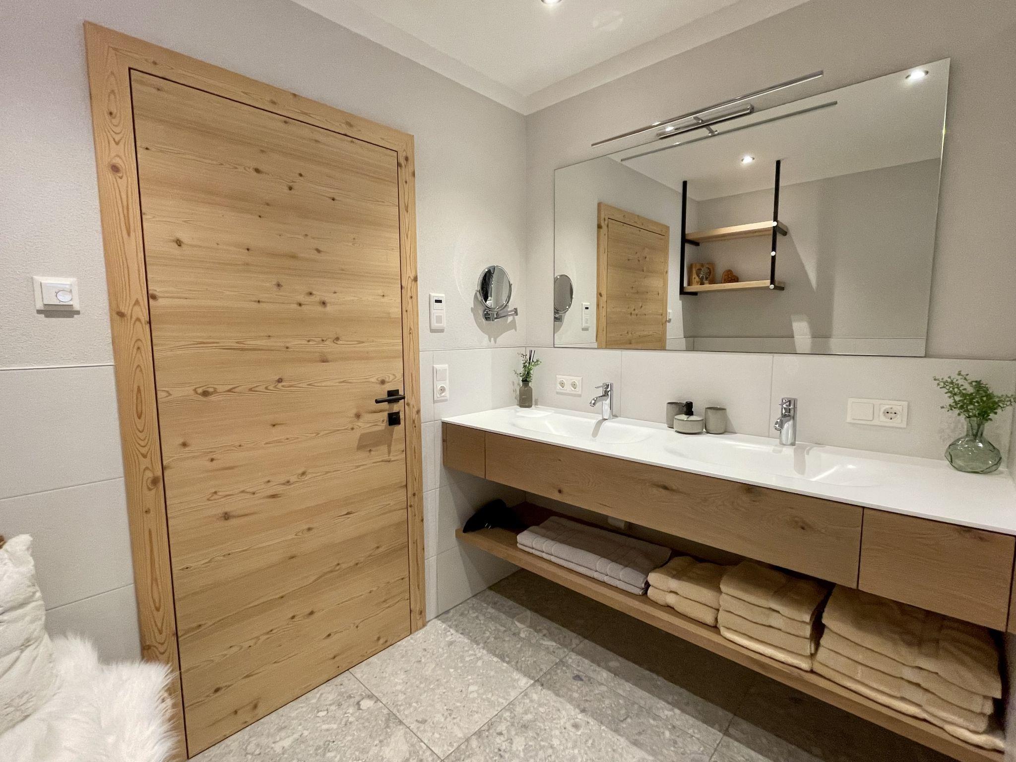 "Chalet Holzerjuwel", 7-room apartment 170 m2, on the ground floor. Bright, very comfortable and tasteful furnishings: entrance hall. 1 double bedroom with satellite TV. Exit to the terrace. 3 double bedrooms, each room with shower/WC and satellite TV. Office with 1 bed and satellite TV. Large kitchen-/living room (oven, dishwasher, 4 ceramic glass hob hotplates, toaster, kettle, electric coffee machine, Capsules for coffee machine (Nespresso)) with dining nook and satellite TV. Exit to the terrace. Shower/WC, sep. WC. Underfloor heating. Wooden floors. 2 large terraces 18 m2. Terrace furniture, electric barbecue, deck chairs (4), box-room. Marvellous panoramic view of the mountains and the valley. Facilities: children's high chair, baby cot, hair dryer. Internet (WiFi, free). Parking (4 cars). Please note: non-smokers only. Private entrance, fire extinguisher. No internal connecting door between the separated properties. Ideal accommodation for home office activities or for a "Workation" - thanks to the extra powerful business WLAN.