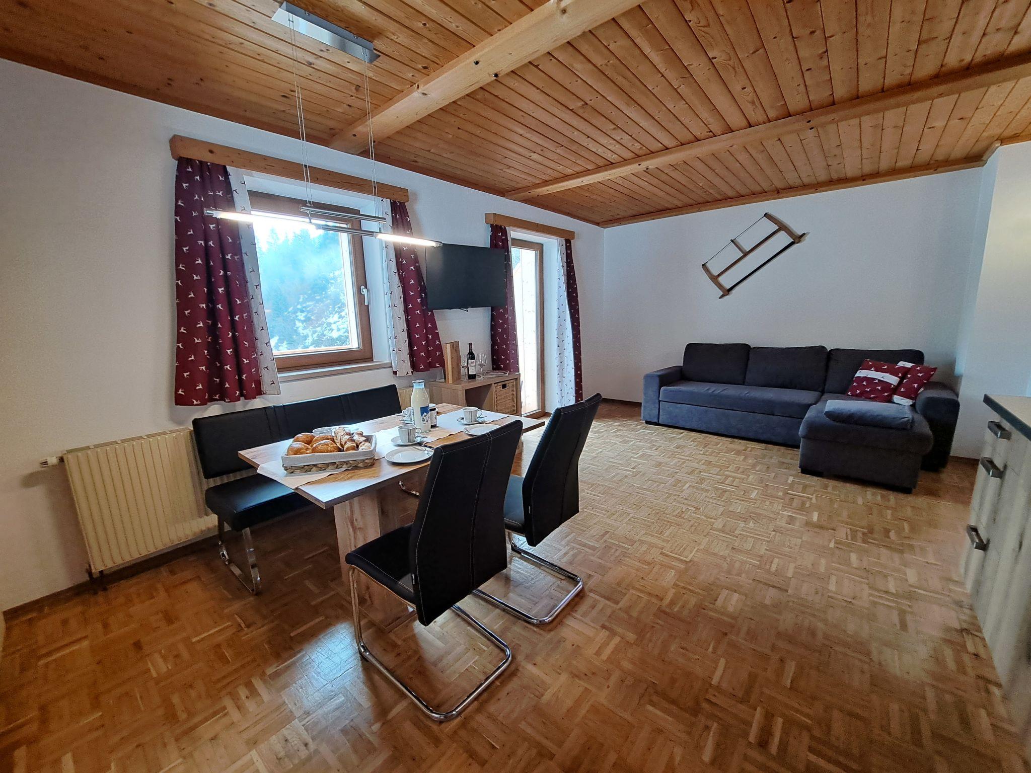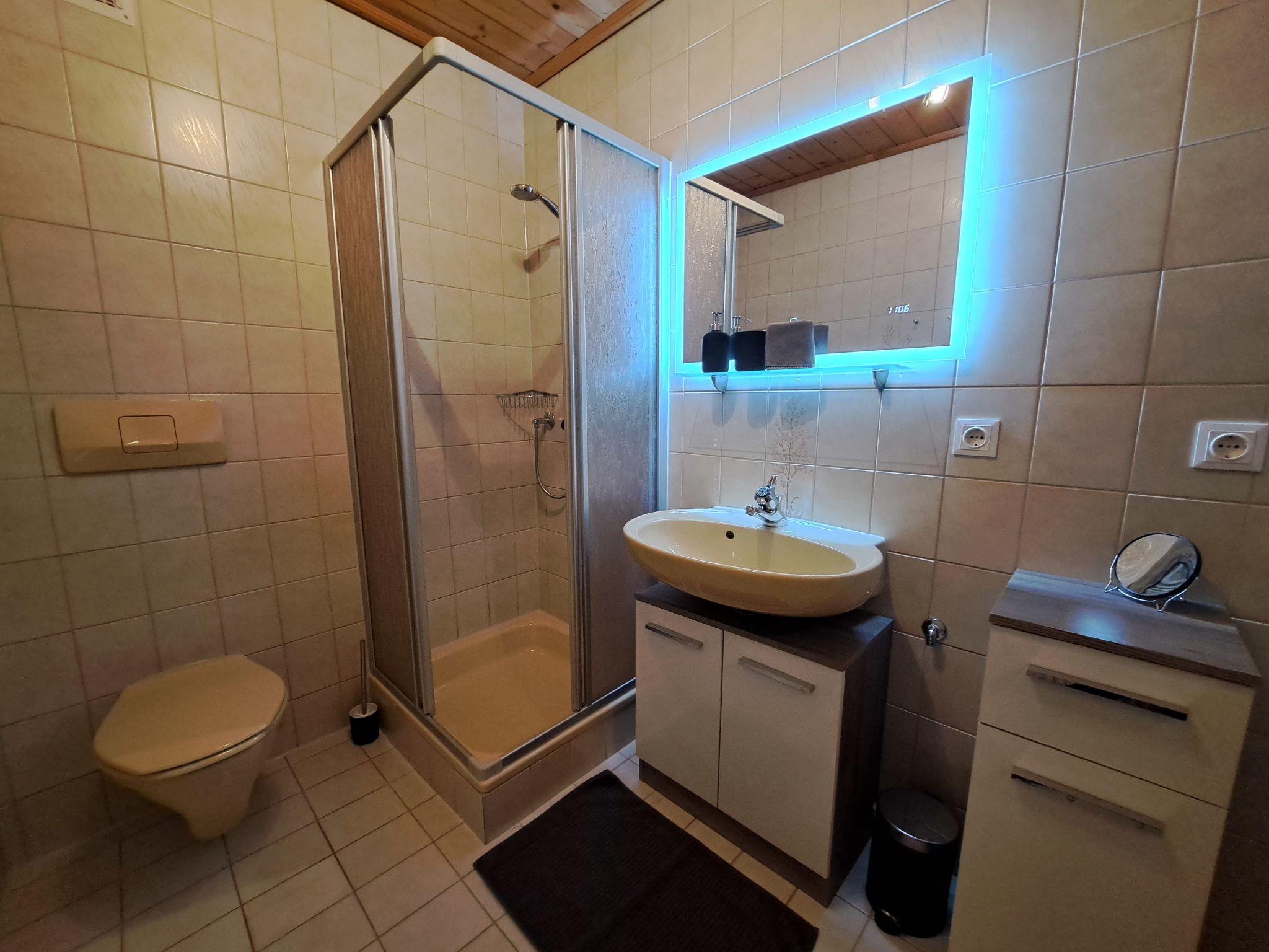 "Waldruhe", 2-room apartment 43 m2. Beautiful and wooden furniture furnishings: 1 double bedroom. Kitchen-/living room (oven, dishwasher, 4 ceramic glass hob hotplates, toaster, kettle, freezer, electric coffee machine) with 1 pull-out bed, dining table and satellite TV. Exit to the balcony. Shower/WC. Heating. Balcony. Balcony furniture. Beautiful view of the mountains. Facilities: hair dryer. Internet (WiFi, free). Parking at the house. Please note: suitable for families. Non-smokers only. Smoke alarm.