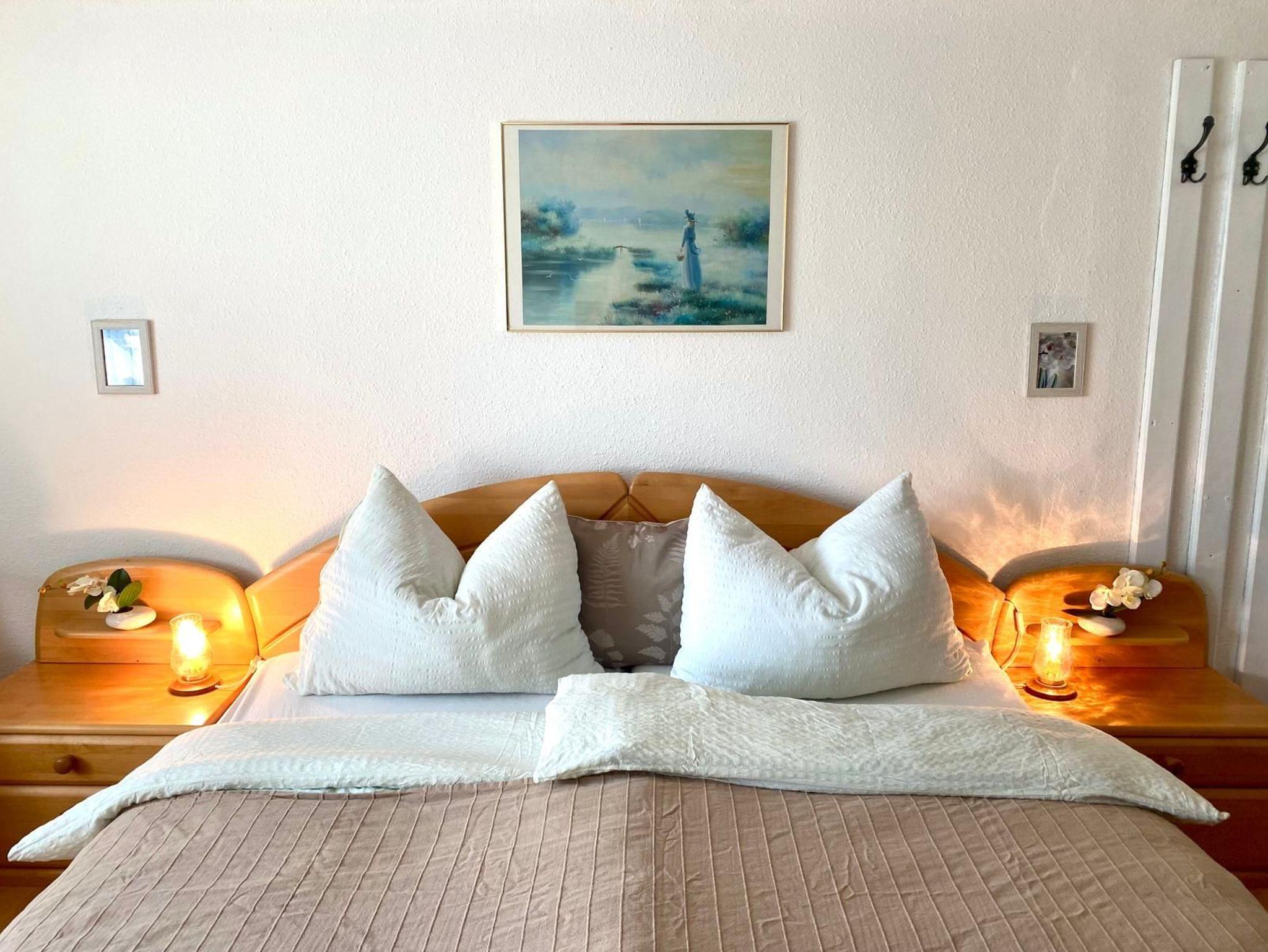 Schlafraum mit großem Doppelbett, TV - großer Badraum mit Dusche/WC