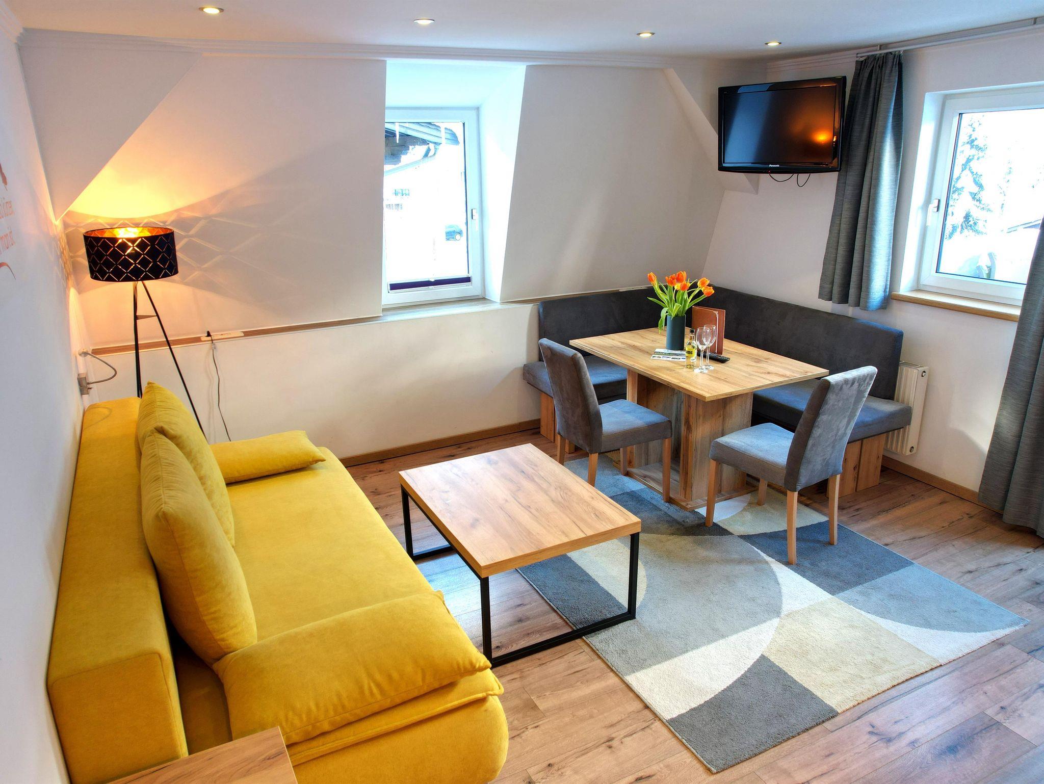 Wohnen für Familien Unsere geräumigen Apartments bieten Platz für Familien von 2 bis 5 Personen und genug Raum, um sich auch im Winterurlaub wie zuhause zu fühlen.