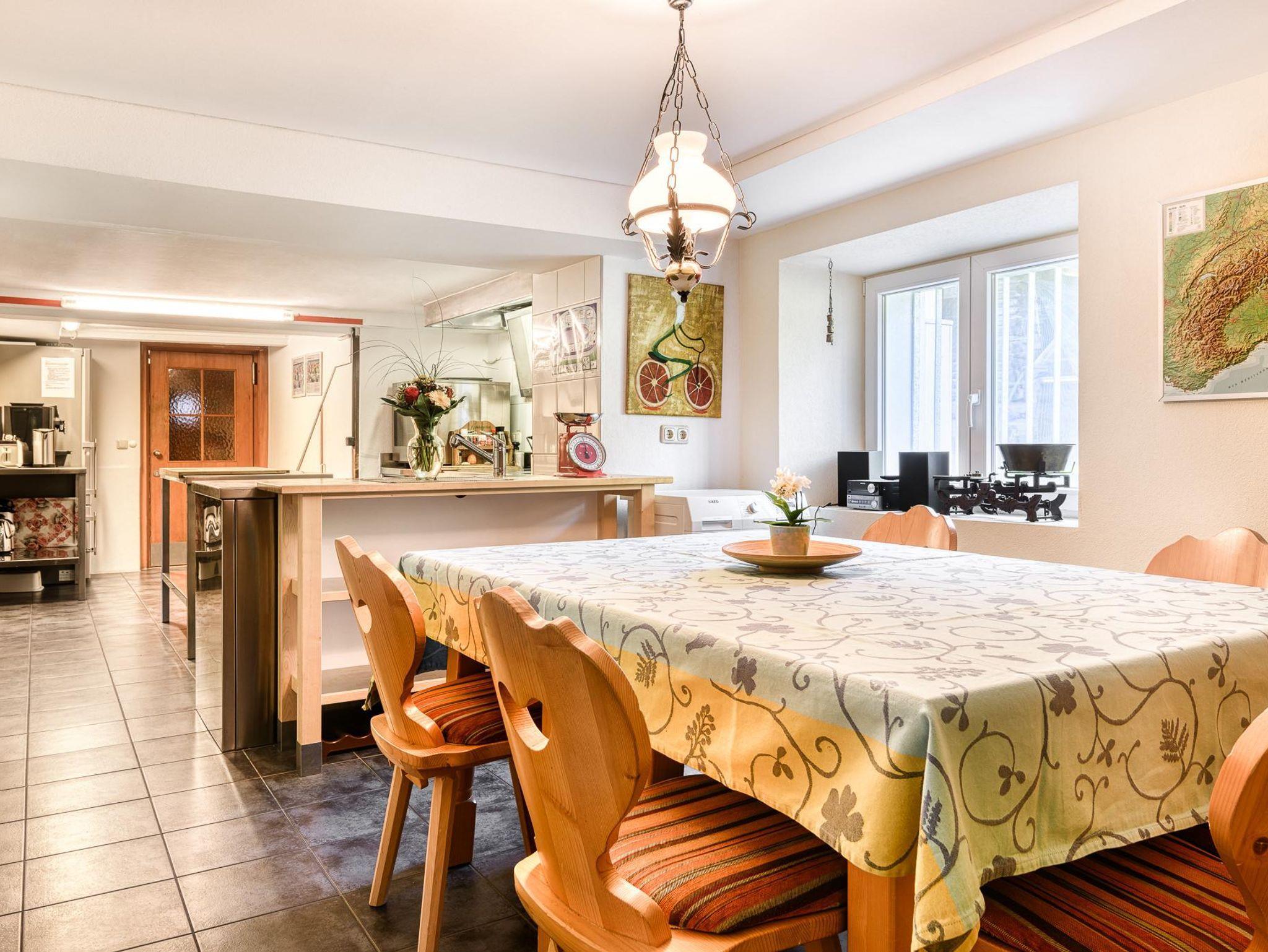 Die große mit professionellen Gastrogeräten ausgestattete Küche bietet alles Notwendige für große Gruppen, sodass der Arbeitsaufwand überschaubar bleibt. Hier können Sie nach Lust und Laune zusammen kochen und dann gemütliche Stunden in der gemeinsamen Gaststube verbringen.