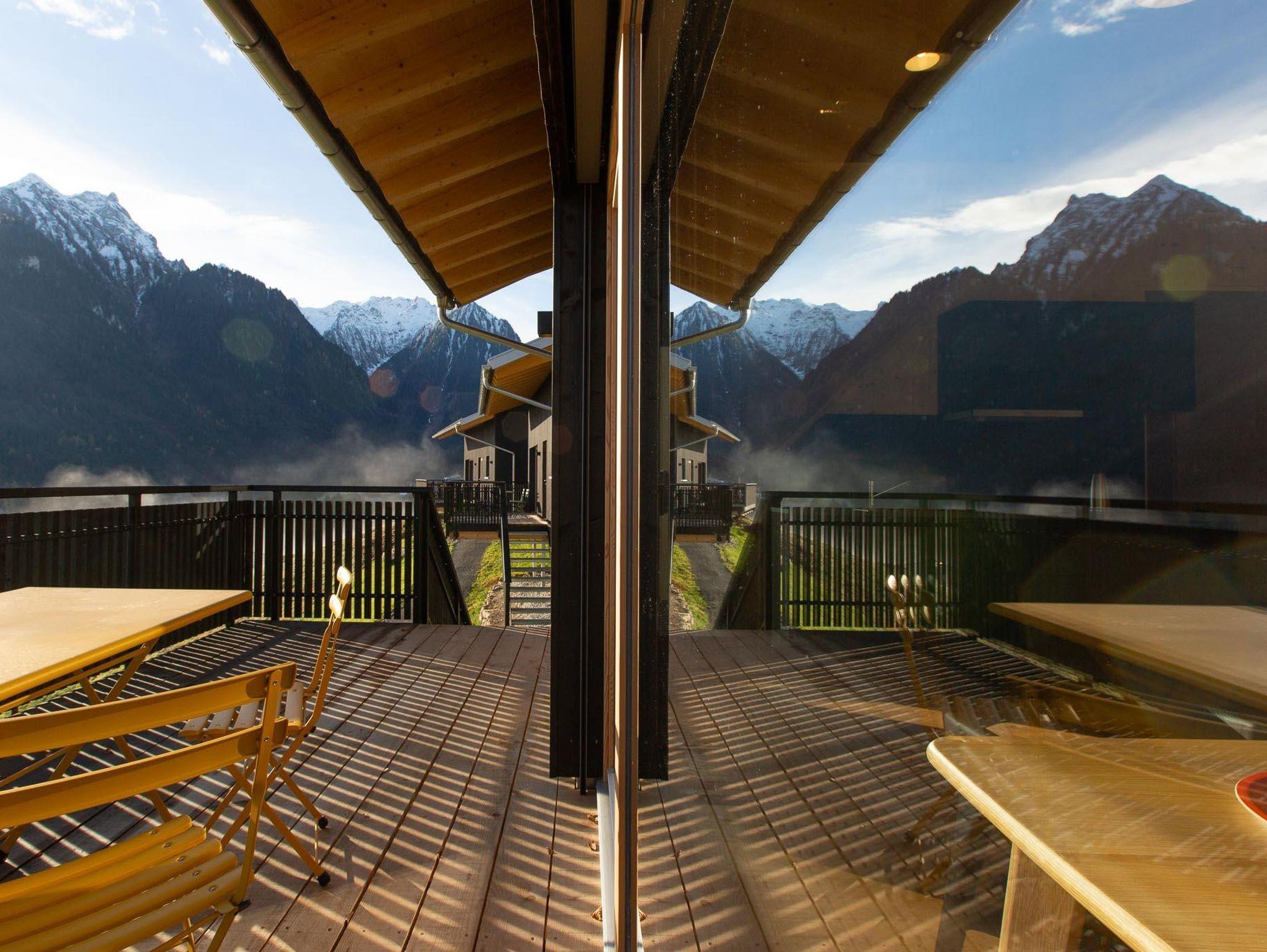 Cabin Valbona ist das Chalet mit Panoramafenster in Richtung Norden mit Blick auf den Wald und die Berge des Walgau. Ausblick von der Terrasse auf das Brandnertal und Weitblick bis ins Klostertal.