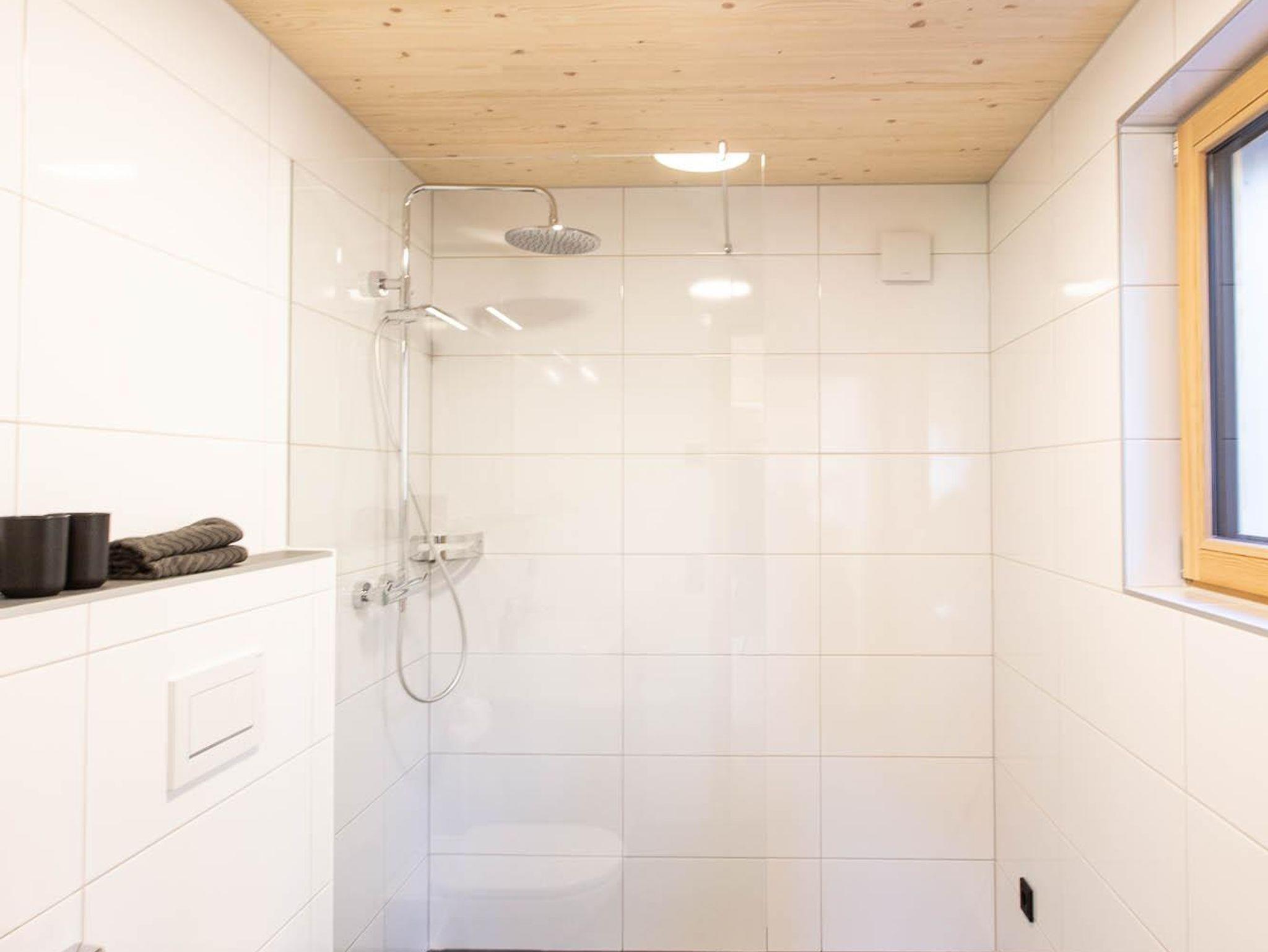 Das Bad ist mit einer Dusche inkl. Regenbrause, WC und einem Waschbecken ausgestattet. Himmlisch schlafen kannst du im separaten Zimmer mit Stockbett oder im Obergeschoss im Doppelbett mit Galerie.
