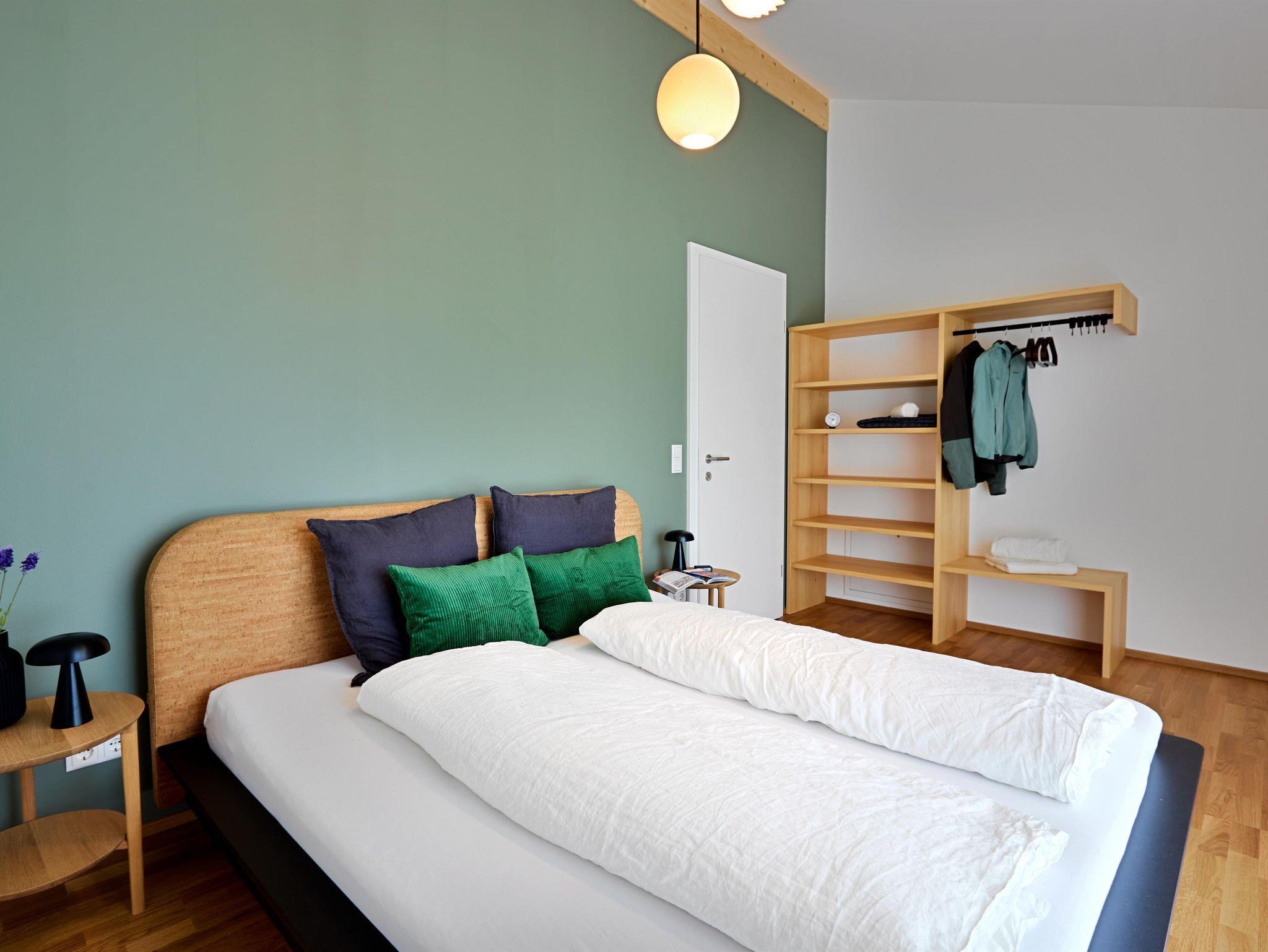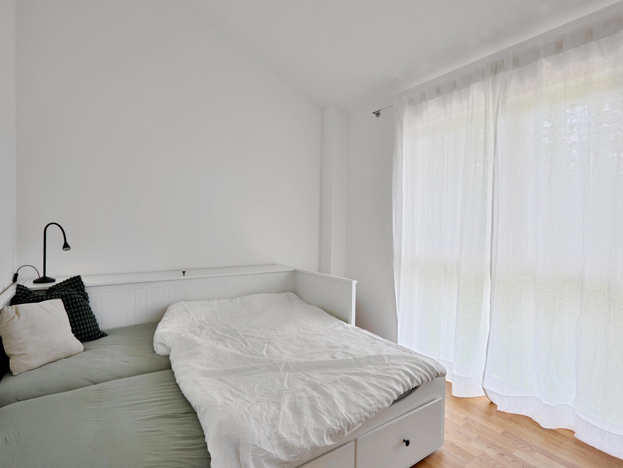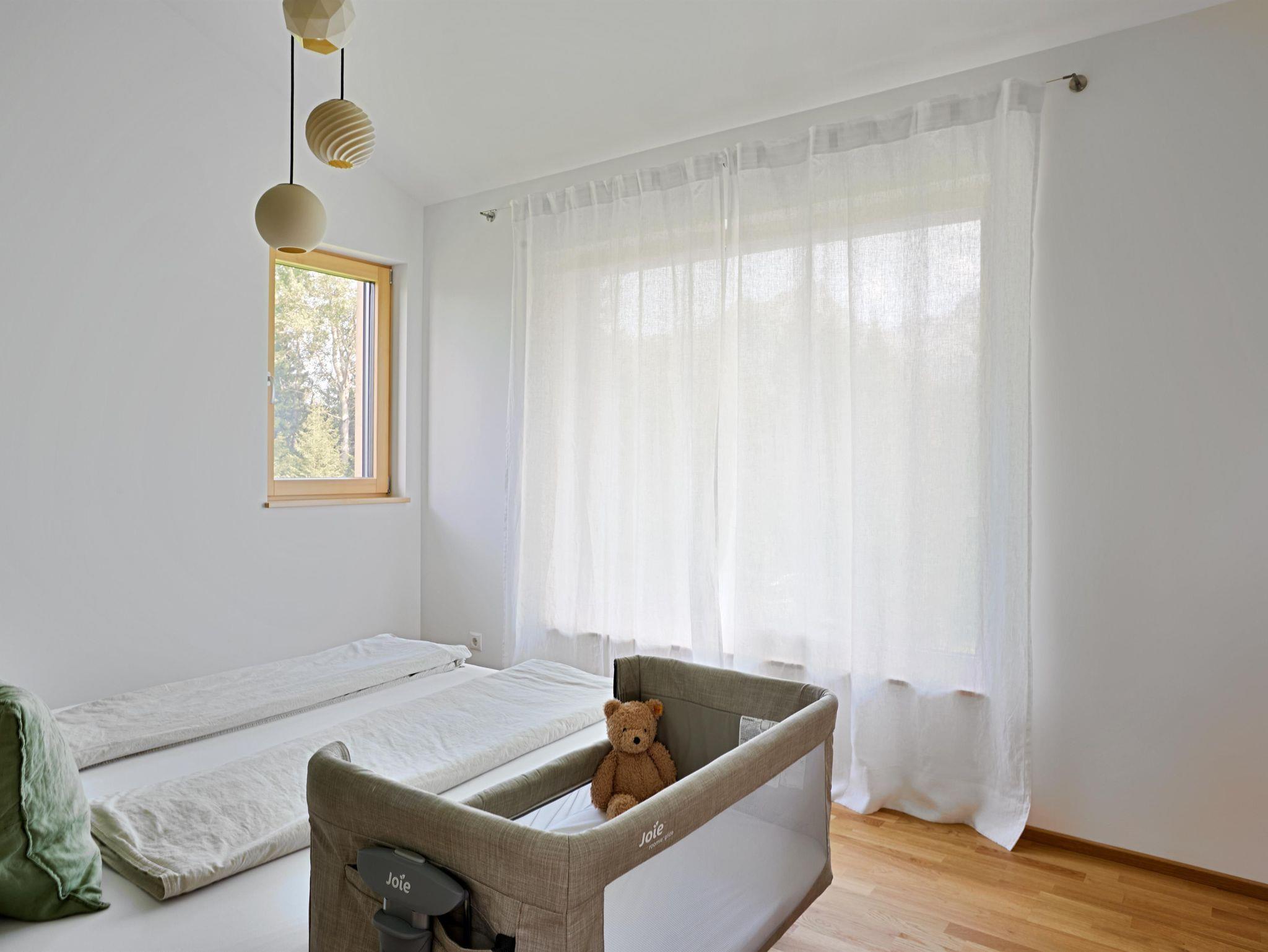 Zimmereaufteilung wie folgt: Zwei lichtdurchflutete, nach Süden ausgerichtete Schlafzimmer mit Doppelbetten und ein gemütliches Schlafzimmer mit ausziehbarem Einzelbett (80x200 auf 160x200).