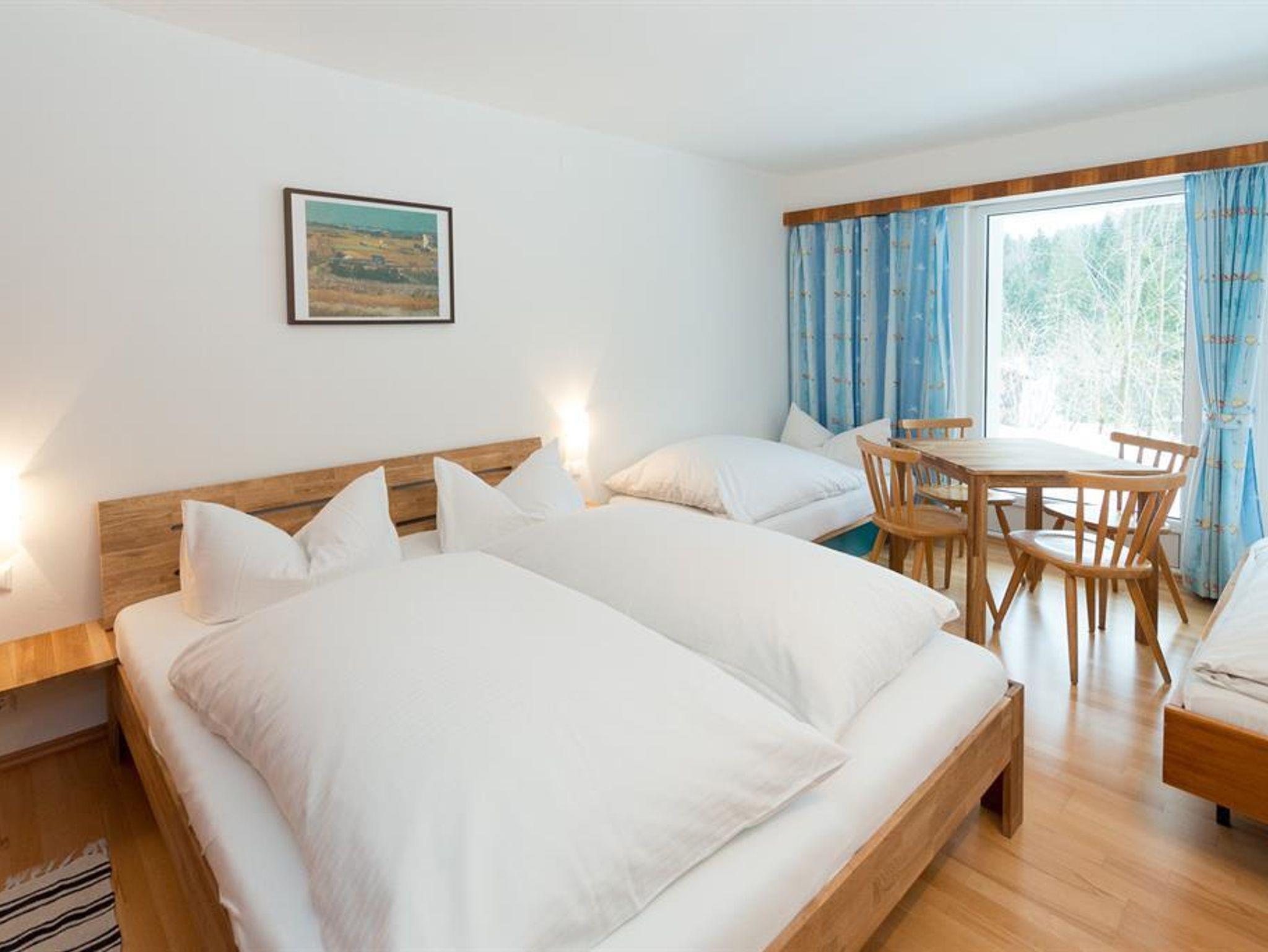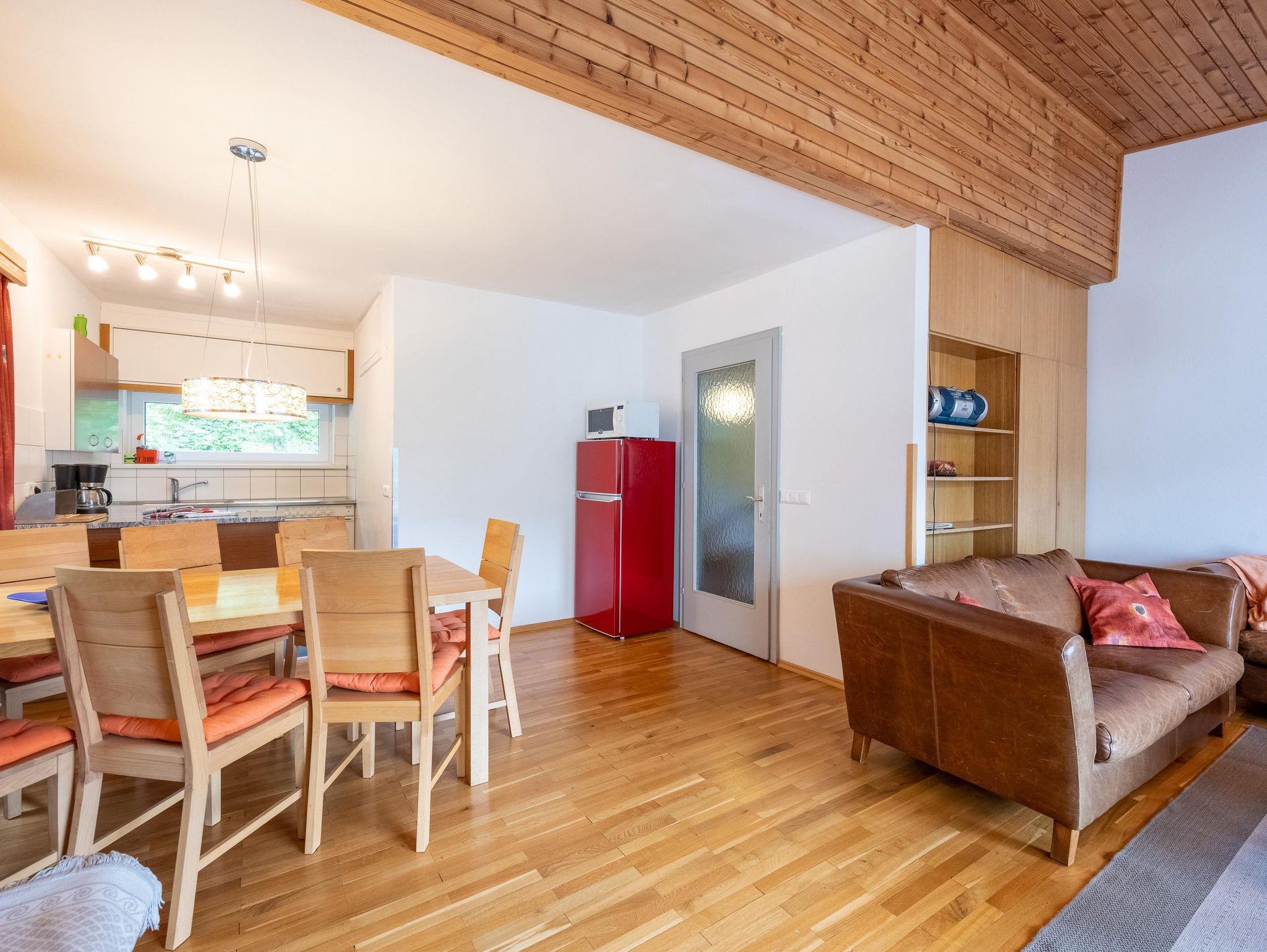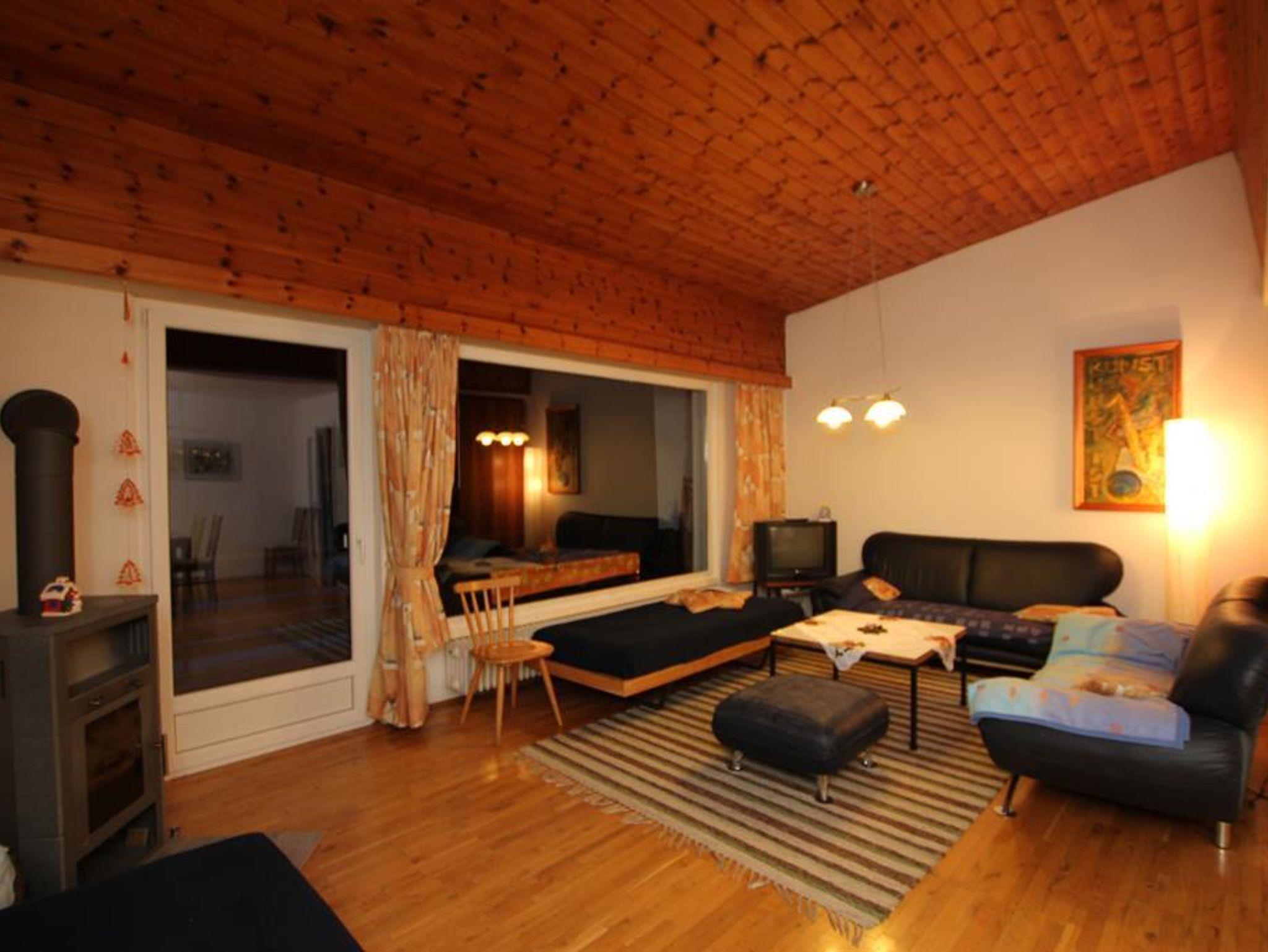 Unser Haus besitzt einen sehr großen Wohn-Essraum mit einem südseitigen Fenster mit großartigem Blick auf die Bergwelt des Rätikons. Der geräumige Aufenthaltsraum bietet viel Platz mit Freunden und Familie zusammen zu sitzen, um zu spielen oder auch nur ein Gläschen miteinander zu trinken. Gleich anschließend befindet sich eine moderne Küche (inklusive Geschirrspüler) und zwei Schlafzimmer (mit je 4 Betten) im unteren Stock.
