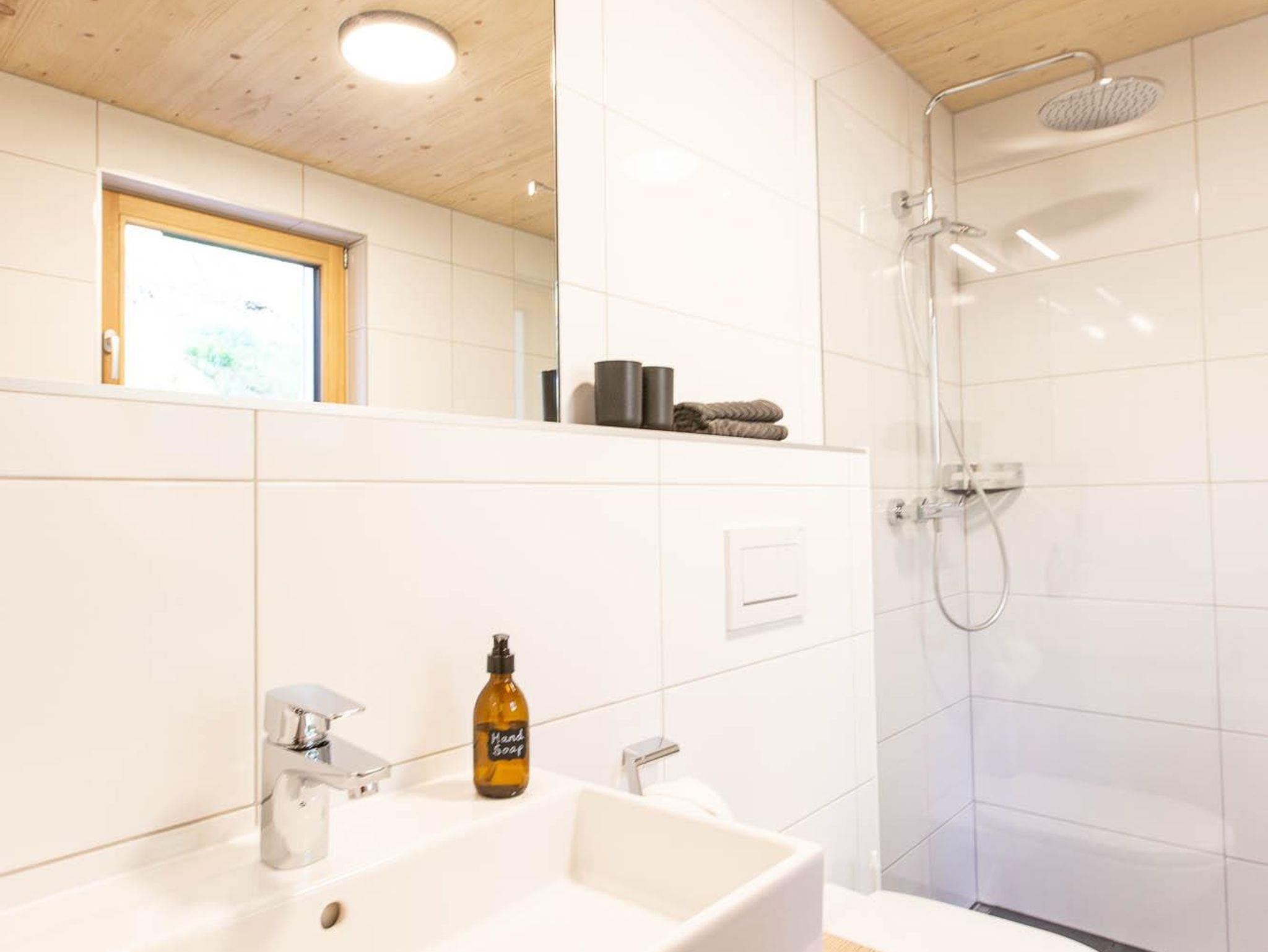 Das Bad ist mit einer Dusche inkl. Regenbrause, WC und einem Waschbecken ausgestattet. Himmlisch schlafen kannst du im separaten Zimmer mit Stockbett oder im Obergeschoss im Doppelbett mit Galerie.
