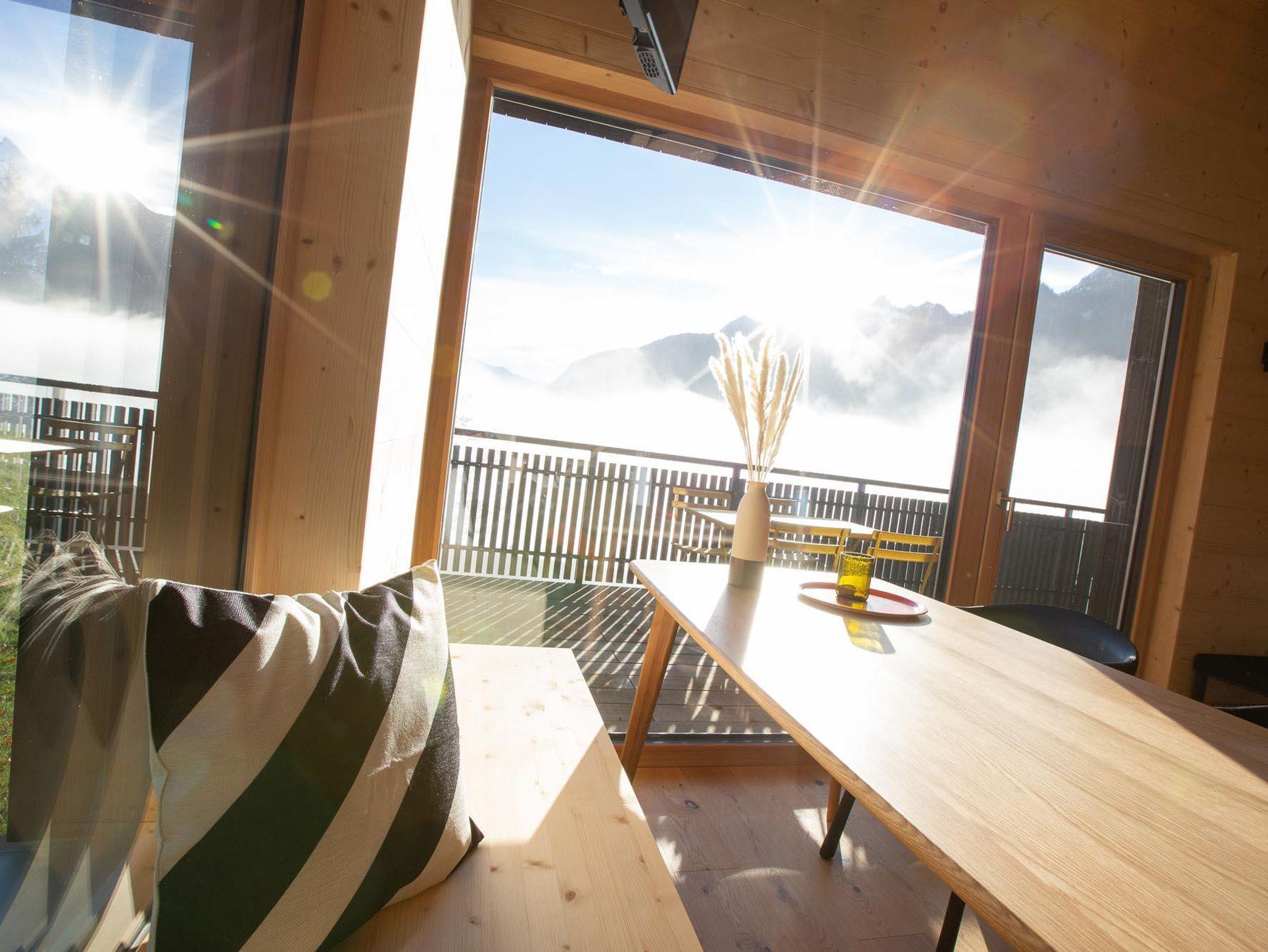 Cabin Zwölfer ist die mittlere Cabin. Du hast einen traumhaften Ausblick von der Terrasse auf das Brandnertal und Weitblick bis ins Klostertal. Das gemütliche Panoramafenster bietet einen Ausblick in Richtung Brandnertal.