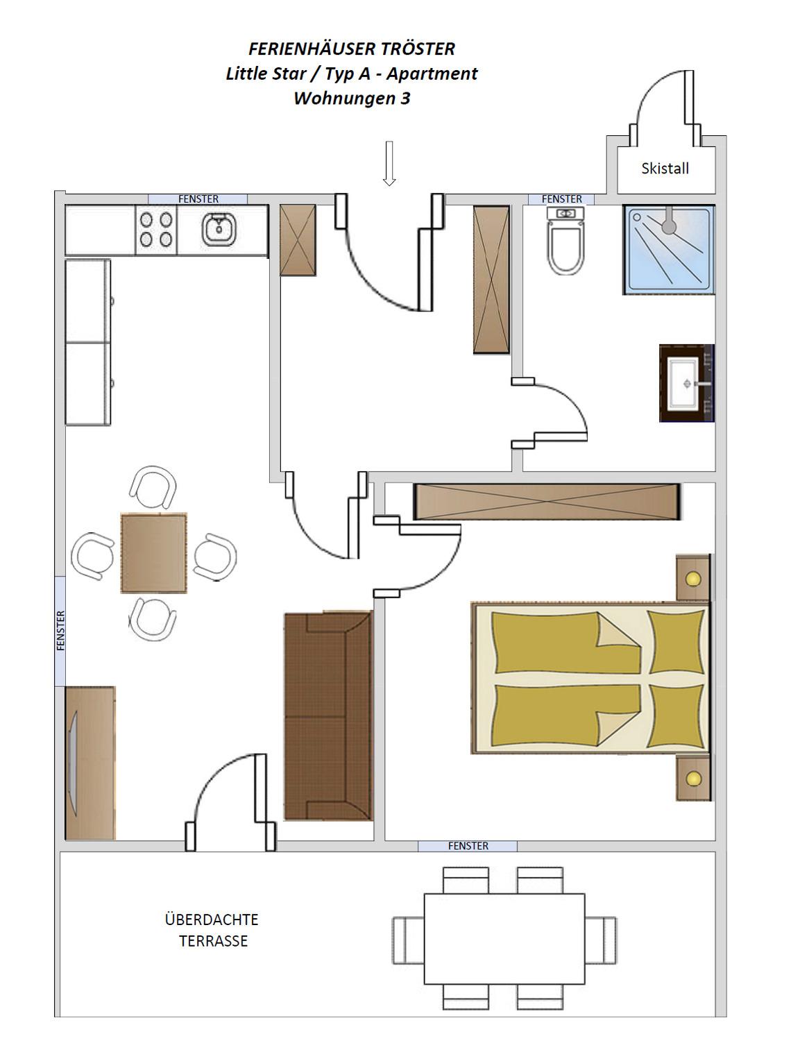Natur, Ruhe, frische Luft, klares Wasser, Bergromantik und das einzigartige Gefühl wirklich frei zu sein, all dies und noch viel mehr erleben Sie bei uns in den Ferienhäuser Tröster. Unsere Appartements liegen zentral, aber dennoch ein wenig abseits des Ortstrubels. Gemütliche Stunden sind Ihnen in unseren Häusern somit garantiert. Die Gehzeit in den inneren Ortskern und zur St. Kathrein Therme beträgt nur 5 Minuten.