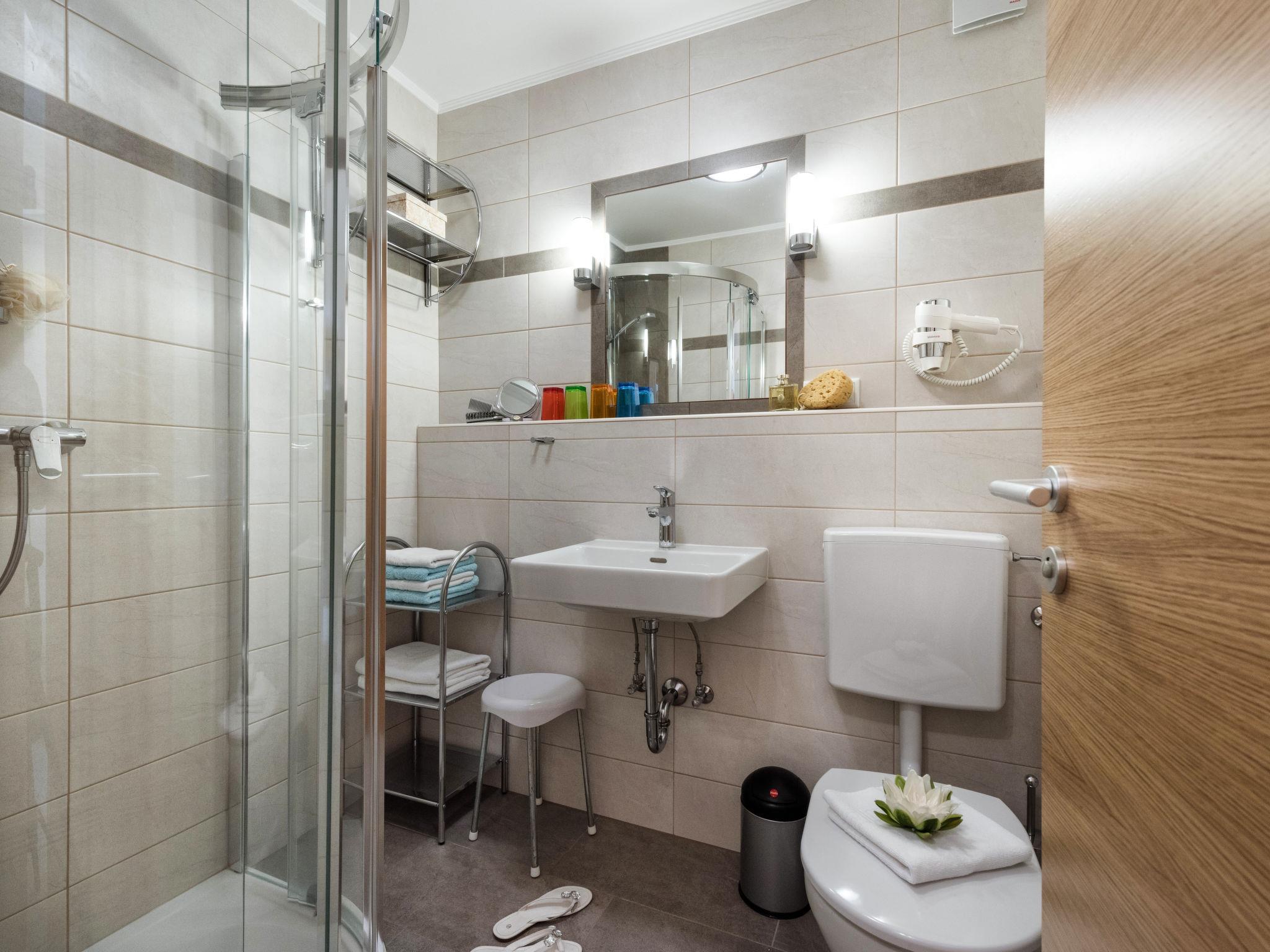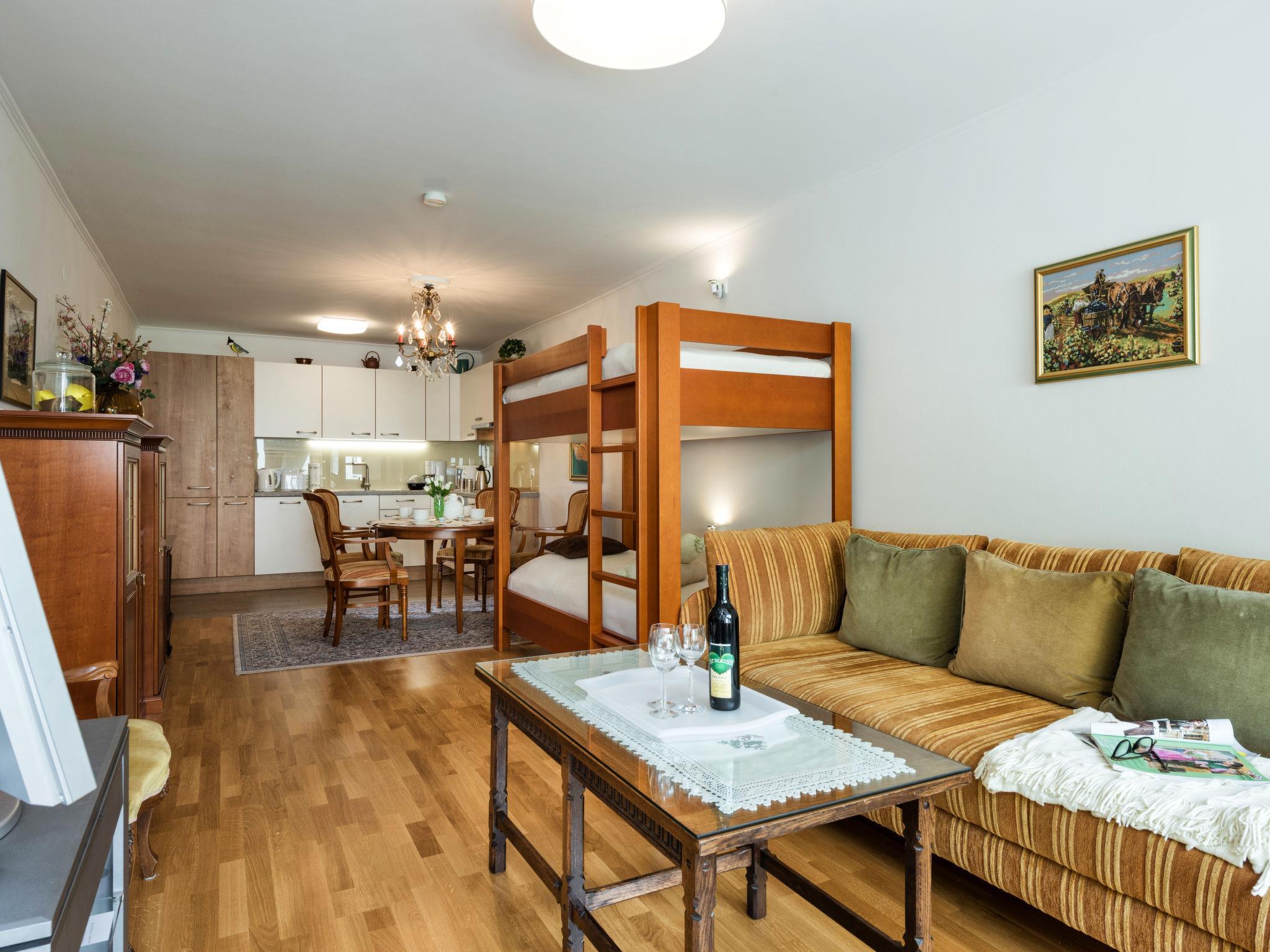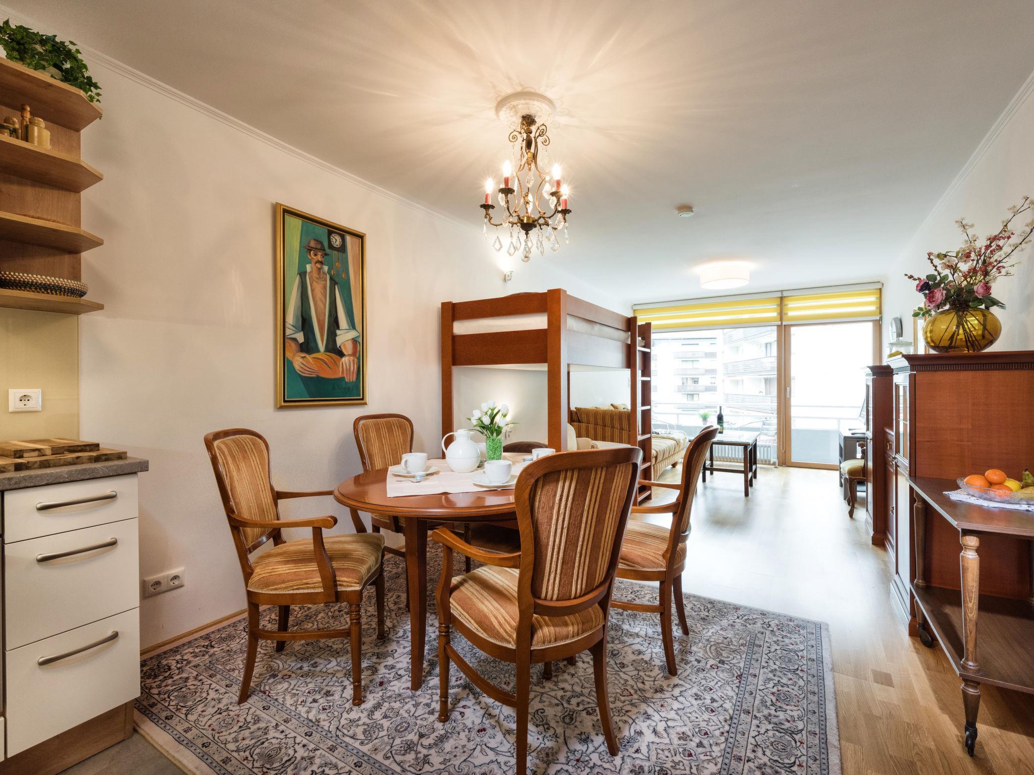 "Maria", 2-room apartment 54 m2 on 2nd floor. Object suitable for 5 adults. Bright, partly in 2017, very tasteful furnishings: entrance hall. 1 double bedroom with panoramic window. Exit to the balcony. Living/sleeping room with panoramic window with 1 sofabed and 1 x 2 bunk beds (90 cm, length 200 cm), cable TV (flat screen), video, radio and CD-player. Exit to the balcony. Open kitchen (oven, dishwasher, 4 ceramic glass hob hotplates, toaster, kettle, microwave, electric coffee machine) with dining table. Shower/WC. Parquet floors. Large balcony 9 m2. Balcony furniture. Very beautiful view of the mountains. Facilities: hair dryer. Internet (WiFi, free). Garage space n 19 at the house. Please note: suitable for families. Non-smokers only. Smoke alarm, fire extinguisher. 50403-000272-2020