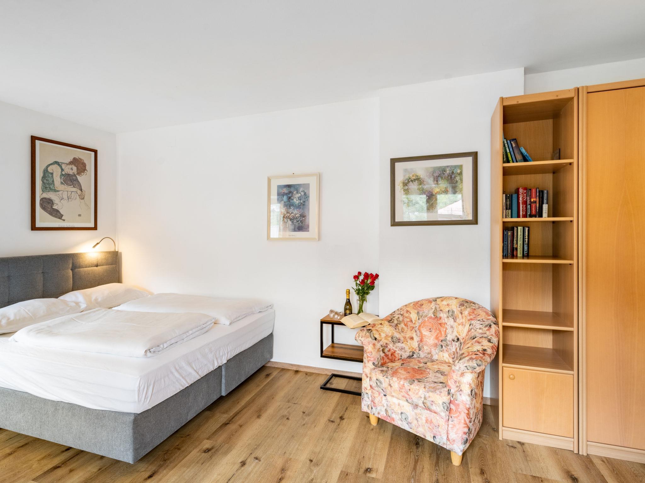 "Claudia Top 7", 1-room apartment 30 m2 on 1st floor. Spacious and bright, partly renovated in 2021, very comfortable furnishings: entrance hall. Living/sleeping room with 1 double sofabed, dining table and satellite TV (flat screen). Exit to the balcony. Open kitchen (oven, 4 ceramic glass hob hotplates, toaster, kettle, electric coffee machine). Shower/WC. Parquet floors. Balcony 7 m2. Balcony furniture, deck chairs (1). Beautiful panoramic view of the mountains. Facilities: Internet (WiFi, free). Please note: non-smokers only. Smoke alarm. 50403-000316-2020